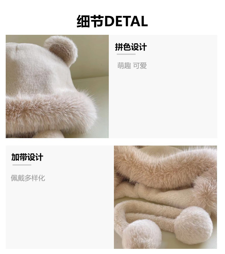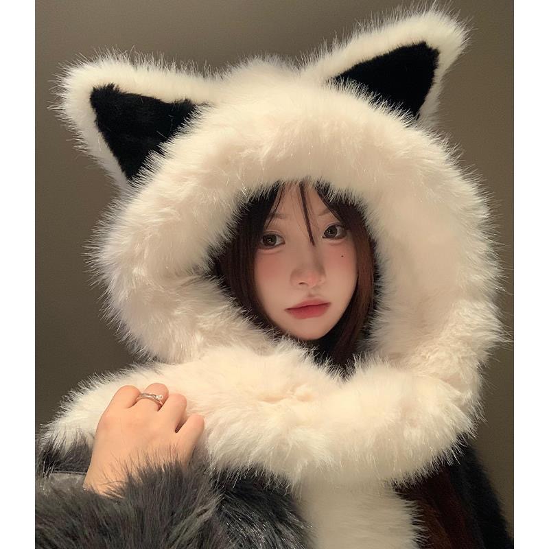 帽子女冬季狐狸耳朵围巾一体两件套防寒毛绒帽子保暖加厚护耳帽子