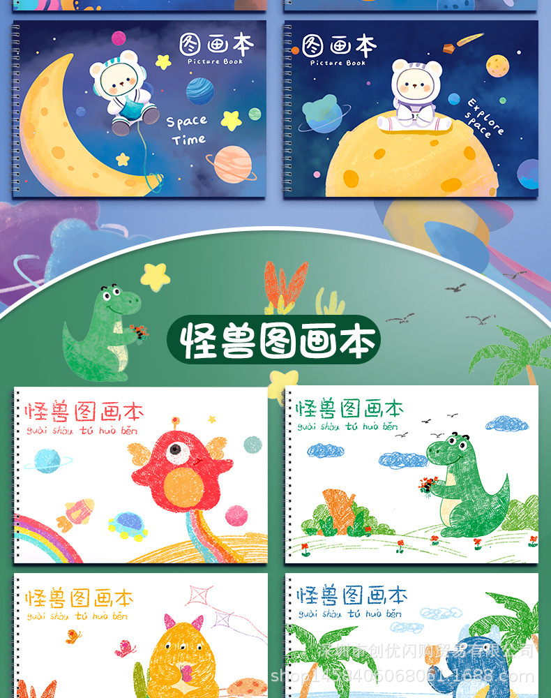カラー [4本厚さ] a 4モンスター/合計120枚,[4本の厚い] a 4恐竜の星/全部で120枚,[4本厚さ] a 4宇宙飛行士/合計120枚,[4本の厚い] a 4熊の星空/全部で120枚です。