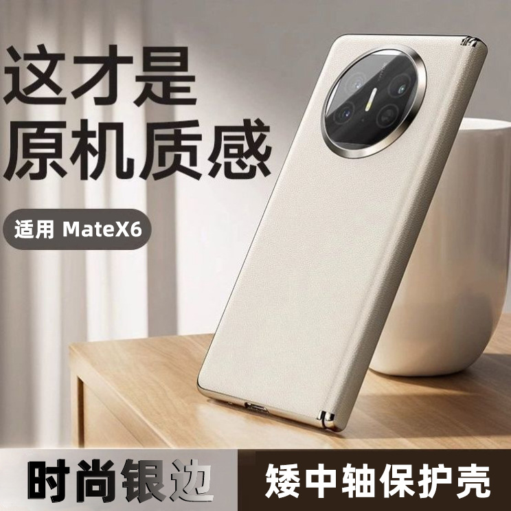 Huawei MateX6 携帯電話ケースに適しています。無地、短い中軸ヒンジ保護、落下防止、軽量、スタイリッシュなフェイクレザー製シングルベースケース。