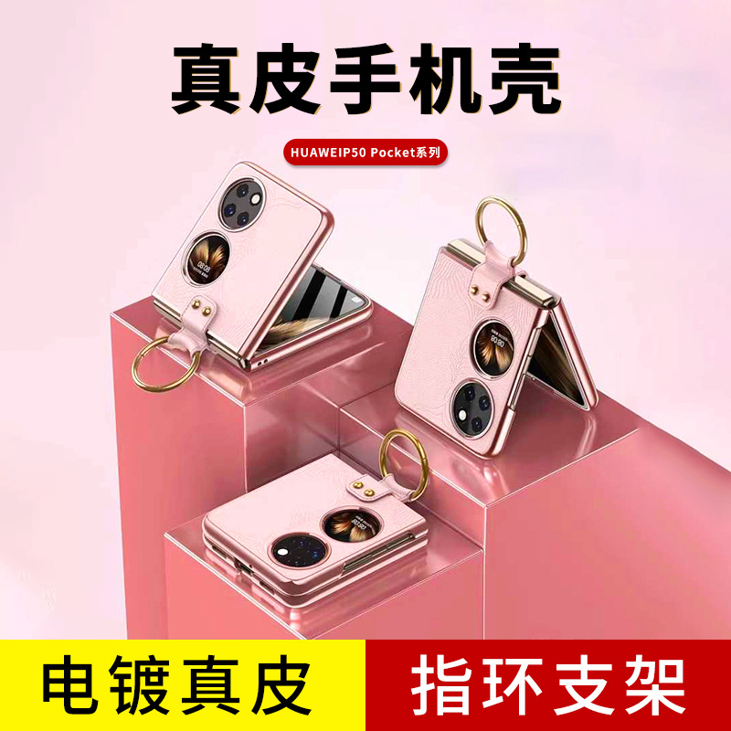 適用華為pocket2メッキ折り畳みスクリーン携帯ケース真皮質感素皮ケース化粧宝ケース小折り畳み