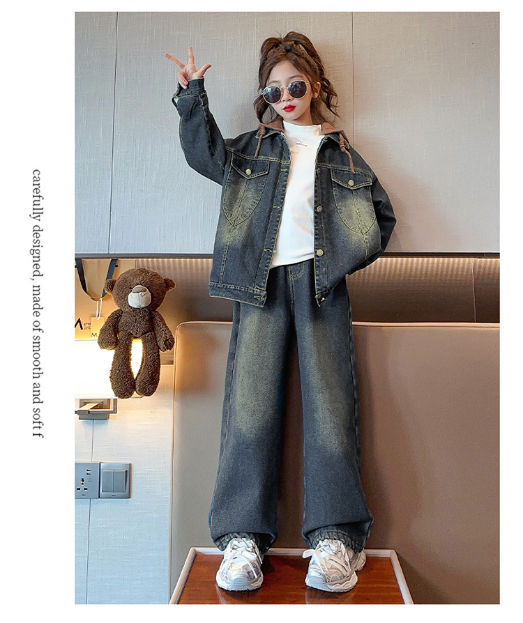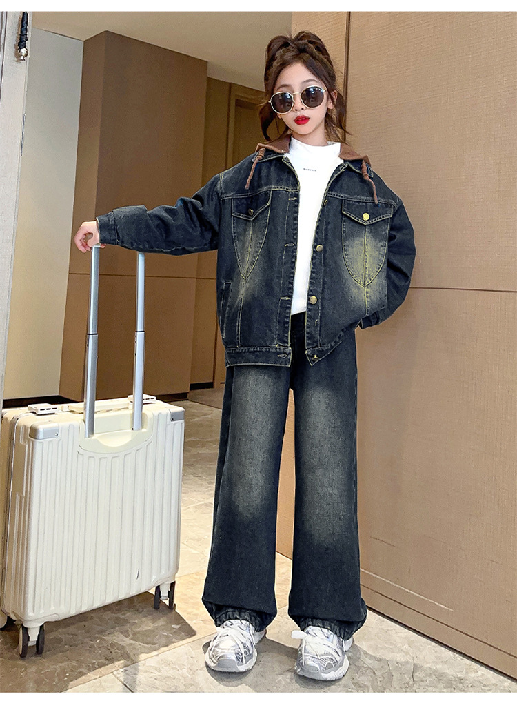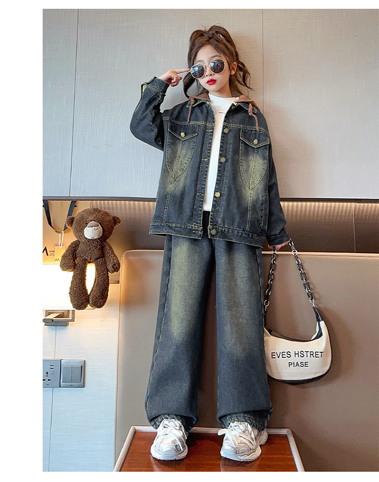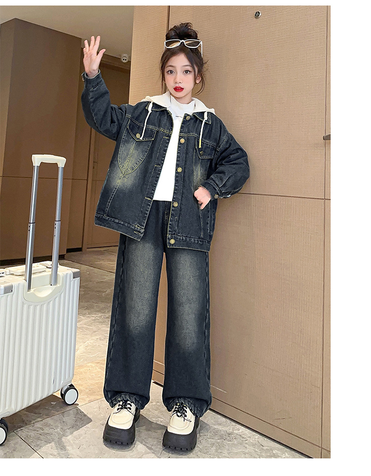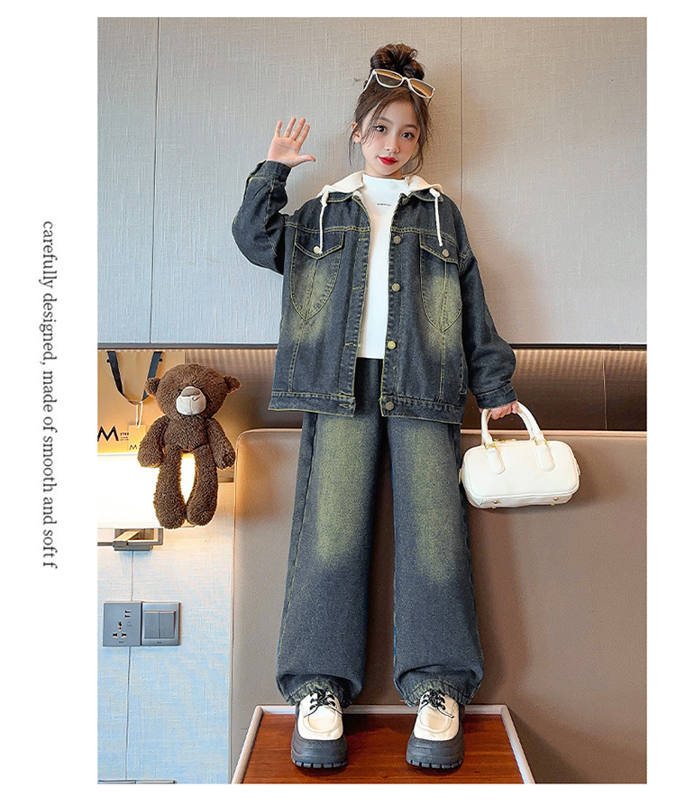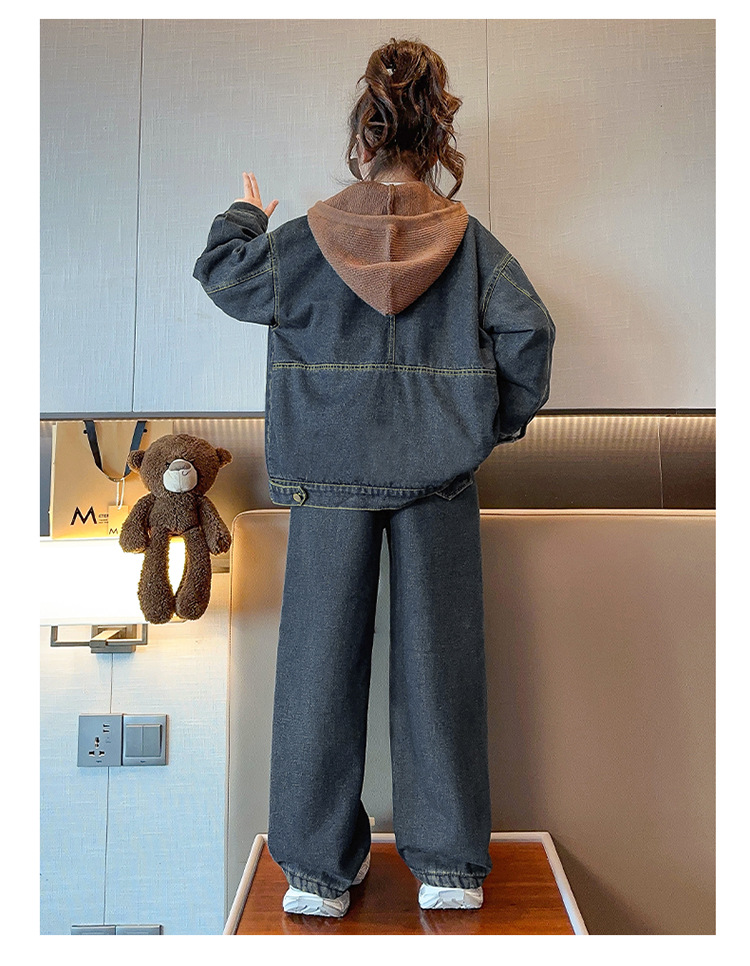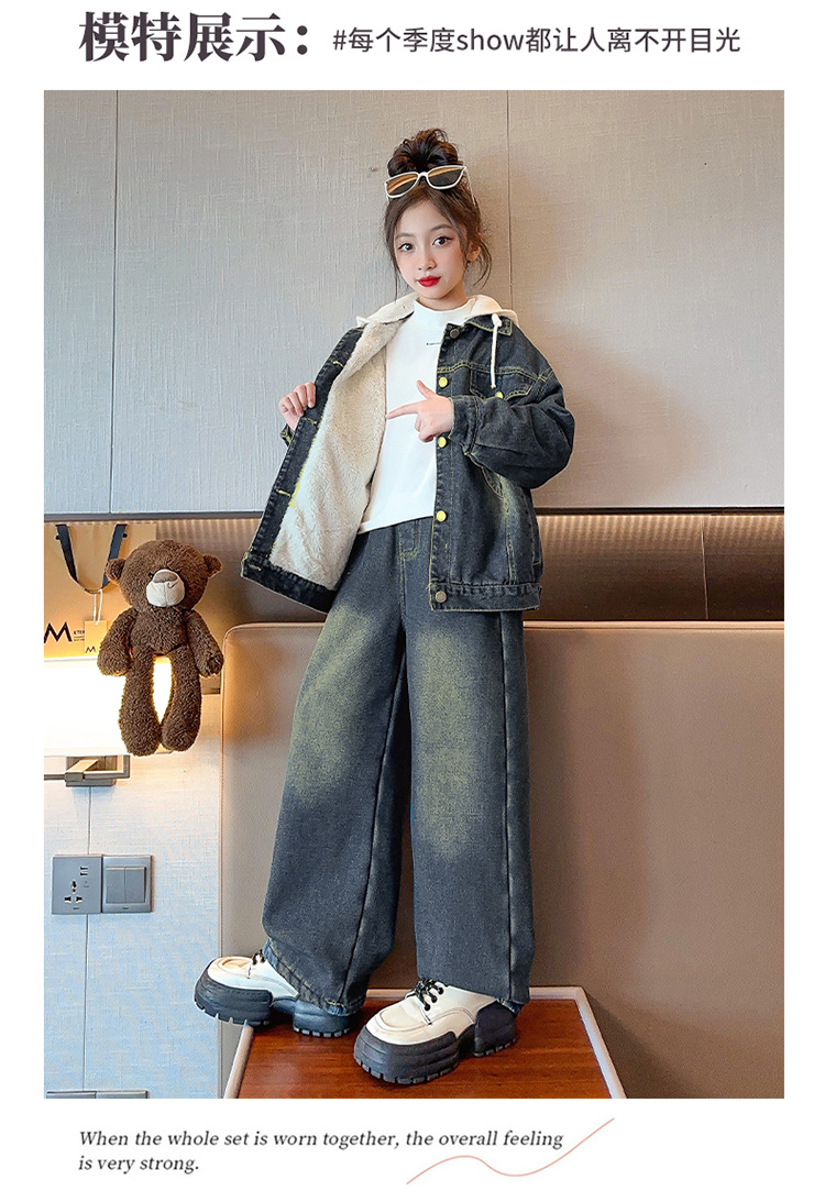 カレー帽子セット春秋タイプ,白い帽子セット春秋タイプ,カレー色のカウボーイコートとベルベット,一枚の米白色カウボーイコートにベルベットをつけた,ブルージーンズとベルベット
