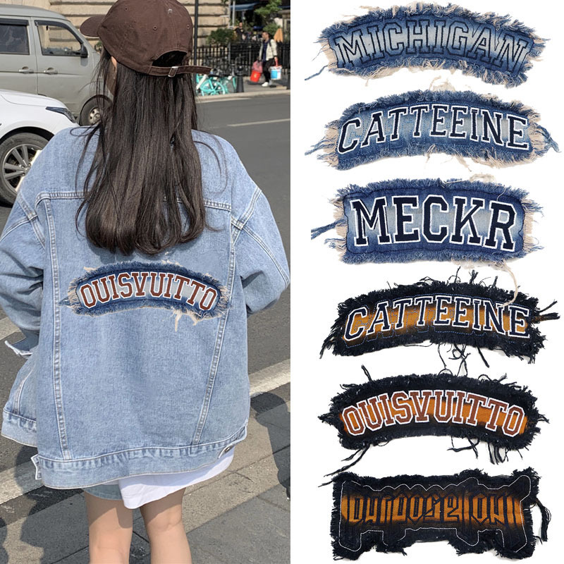 デニムレトロウォッシュ加工ファッション英語文字ワッペン衣料品アクセサリーパッケージ装飾刺繍パッチ立体装飾
