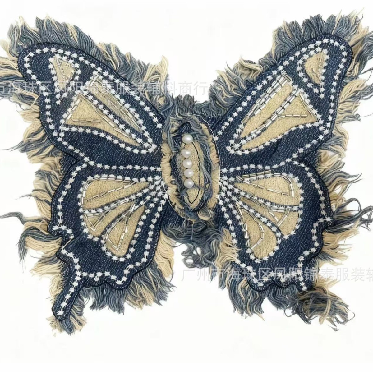 牛仔复古洗水时尚蝴蝶布贴珠管绣服装辅料包包装饰绣花补丁