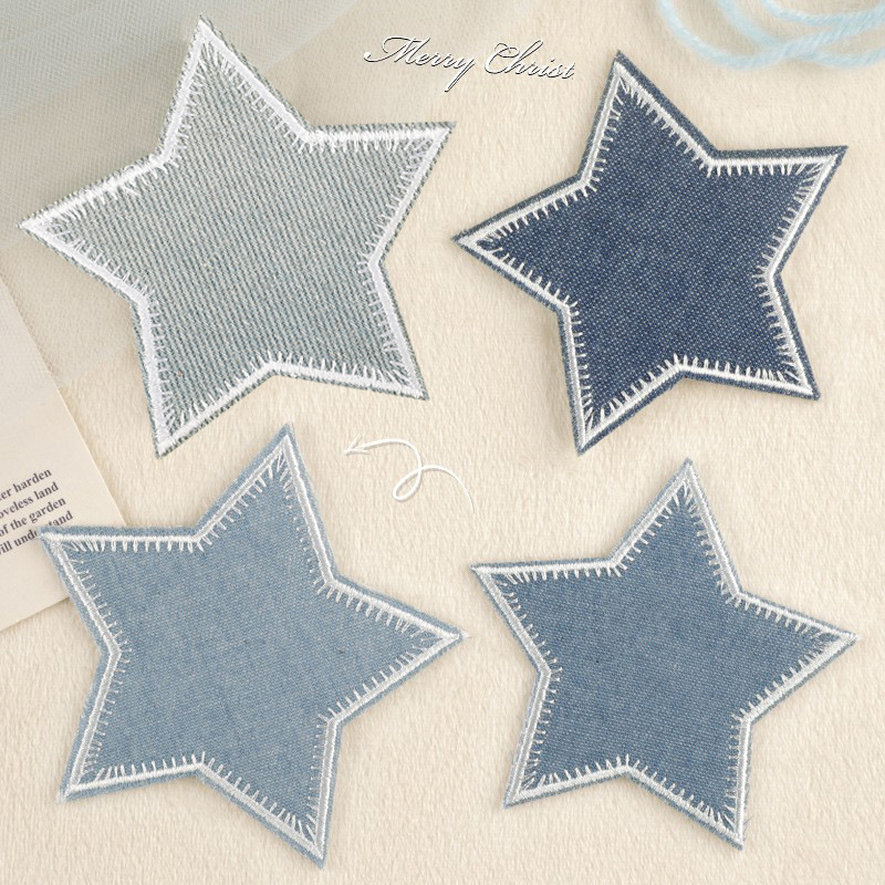 パッチの服の補助材料のバックゴムのパッチはデニムの五角星の刺繍を貼ります。