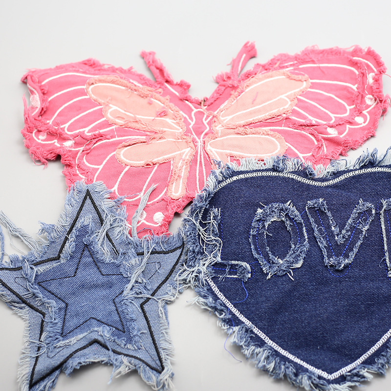 新しいデニムの星の蝶の愛の布はパッチを貼ります。