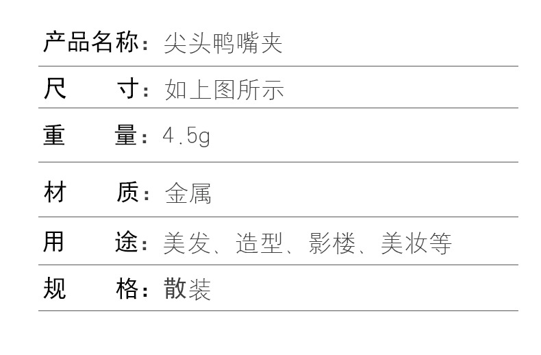 ばら積影楼髪廊美容クリップ金属カモ口クリップ理髪店髪型位置決めクリップシングルフォーククリップ