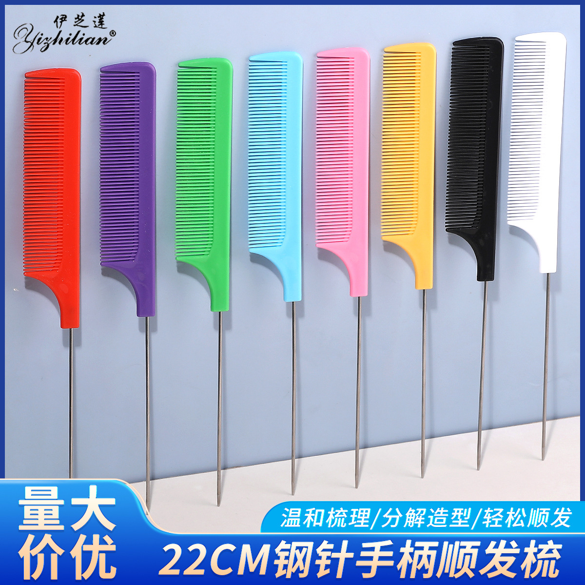 散髪用専用の尖尾コーム、細かい歯のスチール製尖尾コーム、ヘアスタイリスト用の尖頭分け目コーム