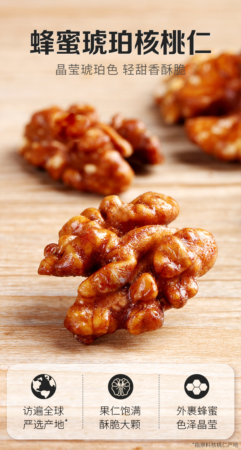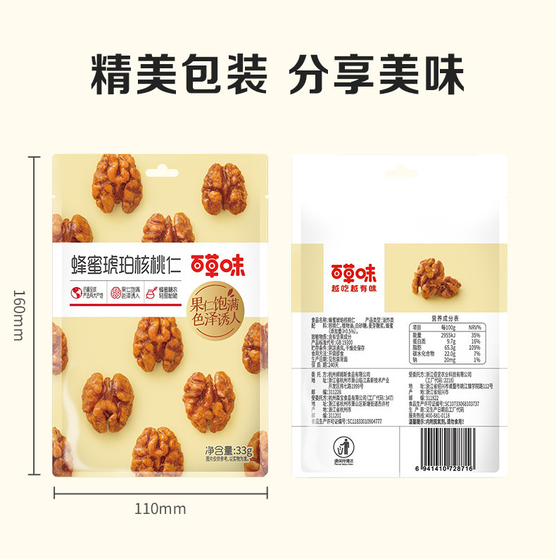 百草味蜂蜜琥珀クルミ仁33g紙皮クルミ肉ナッツレジャースナック卸売り