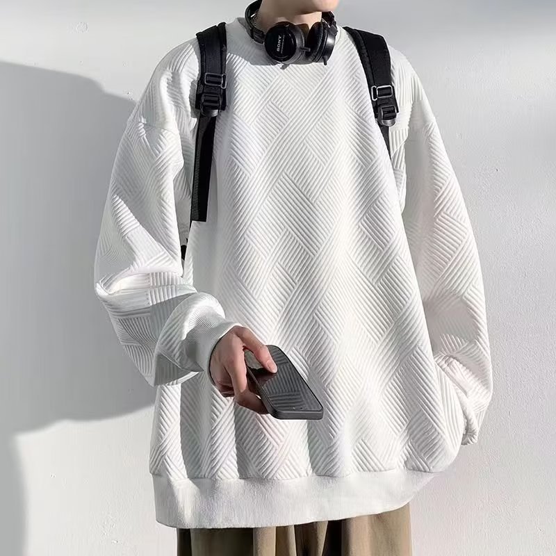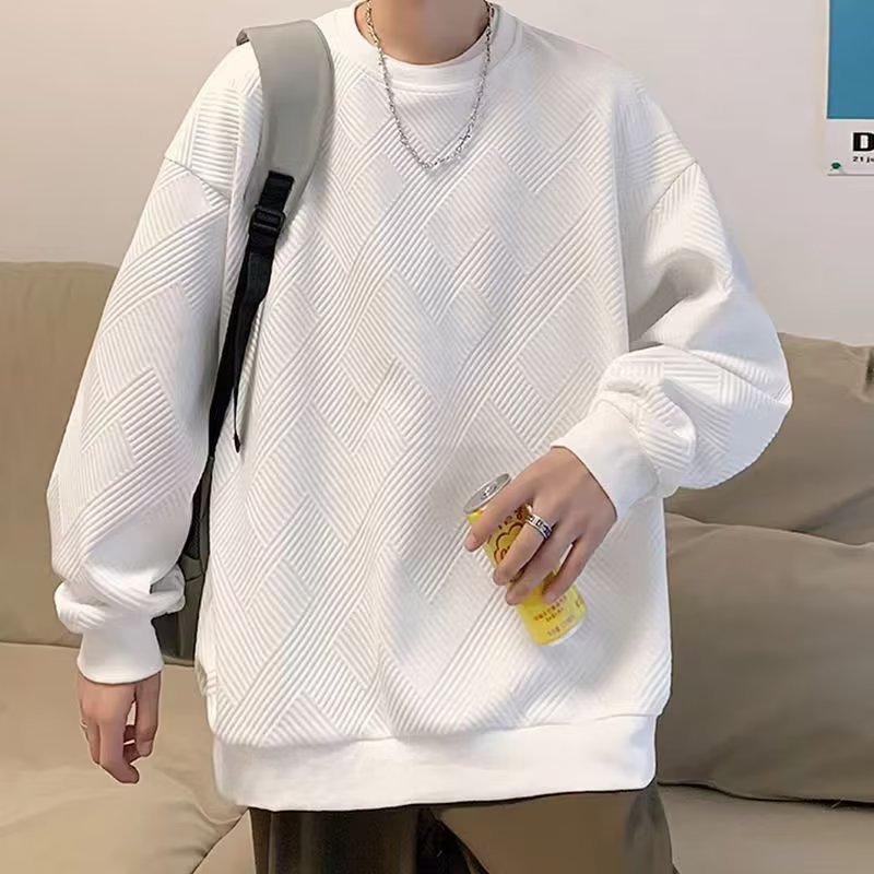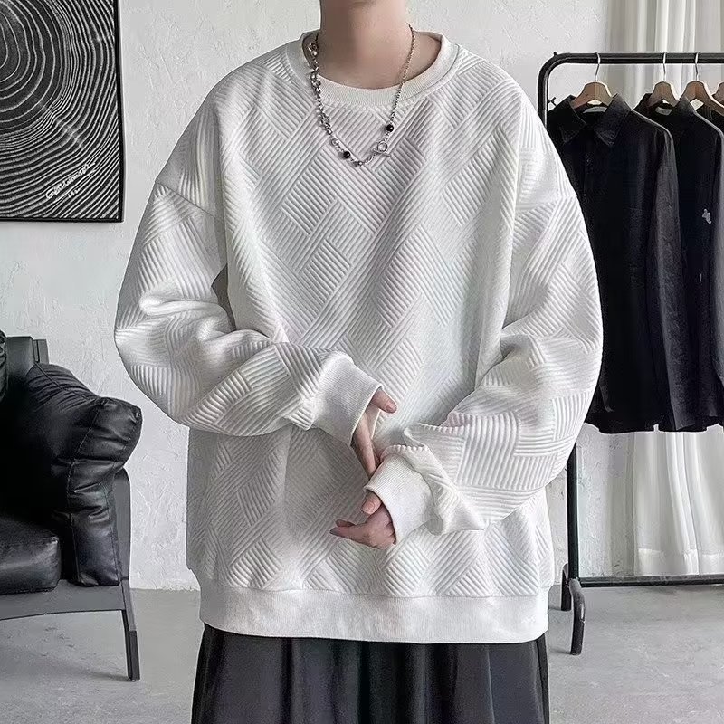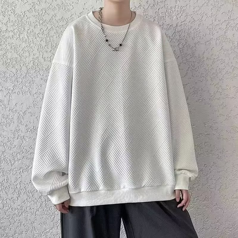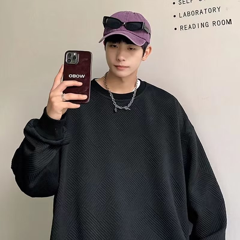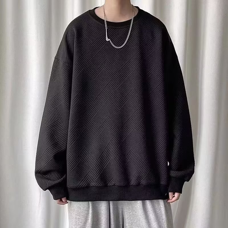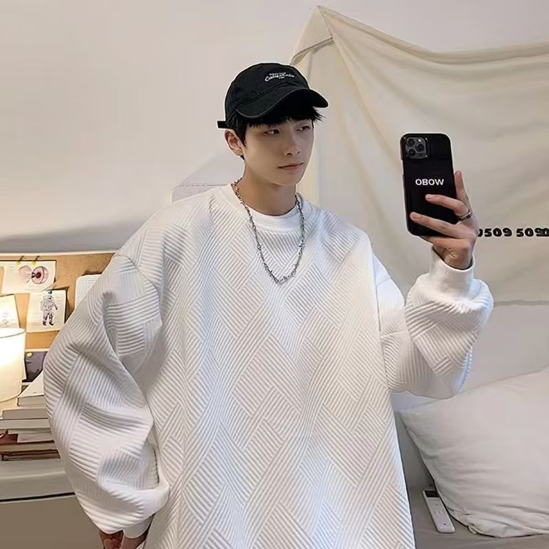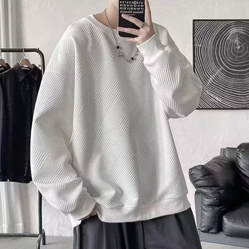 重いポンドのワッフルの丸首の衛衣の男性の春と秋のファッションのブランドの大きいサイズの新型の男性のゆったりしている長袖は帽子がなくて服をかぶせます。