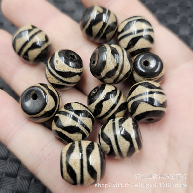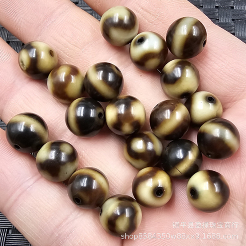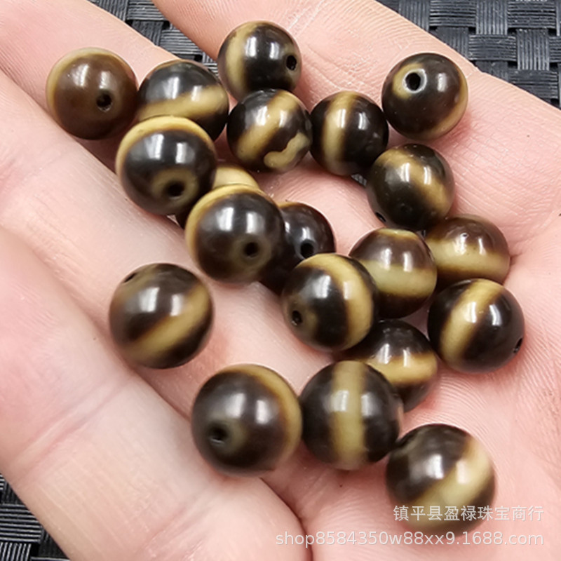 厂家直销 线型天珠圆珠玉石散珠咖啡色玛瑙珠子12毫米手链饰品配件手工珠子