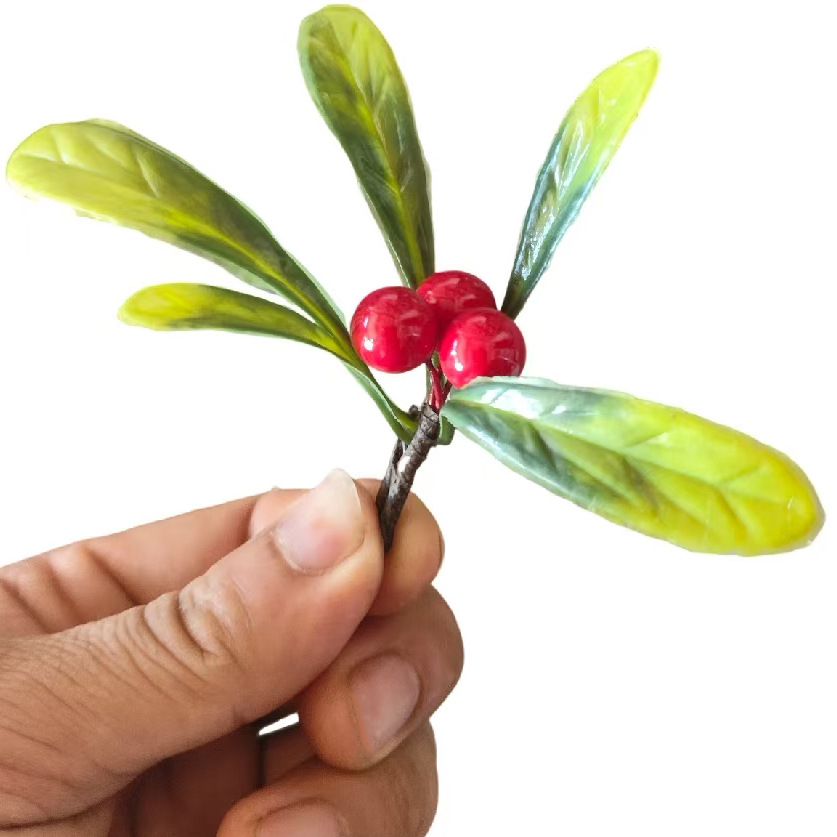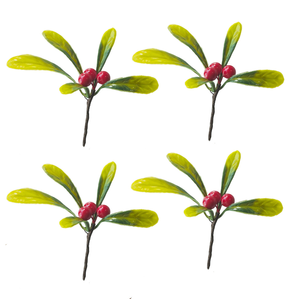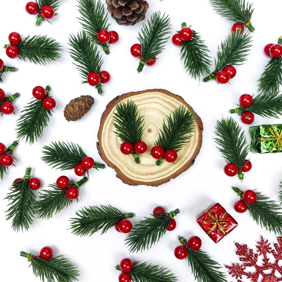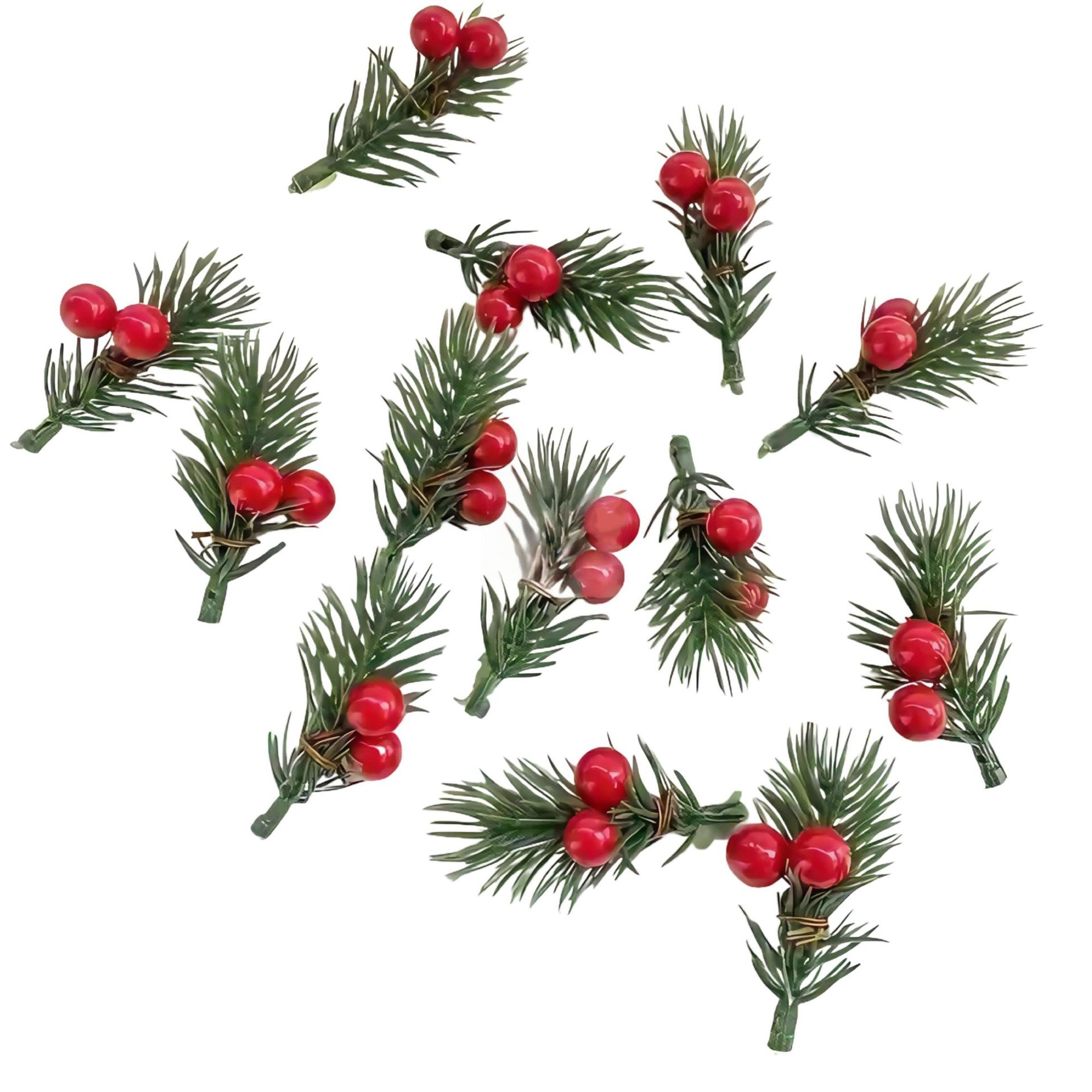 跨境圣诞刷白雪花松针红果配件仿真红果枝圣诞礼品礼盒装饰浆果