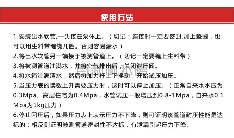 中小型試圧ポンプ加圧ポンプ家庭用圧力ポンプ加圧ポンプ手動ppr水管圧力ポンプ床暖検査漏れ