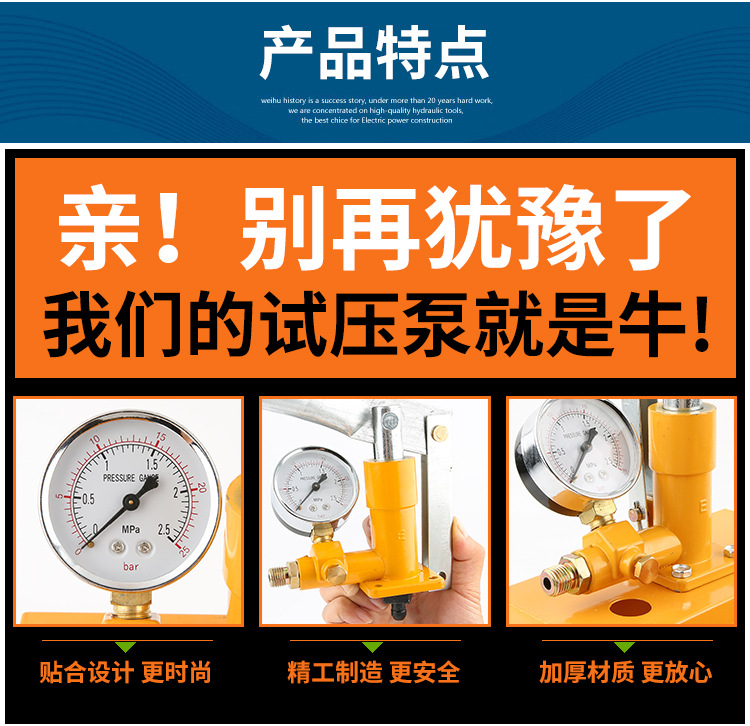 ppr水管检漏仪手动试压泵地暖暖气炉打压机家用水压测试测压泵