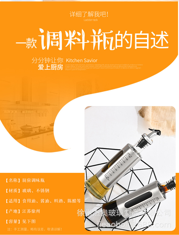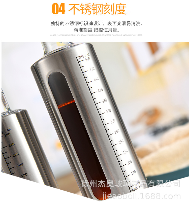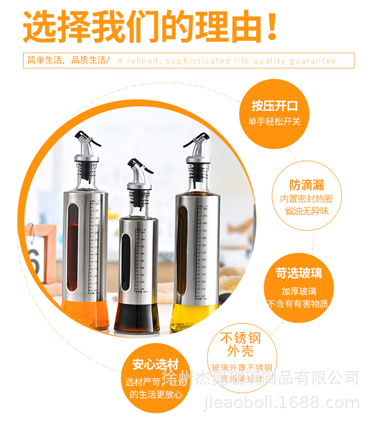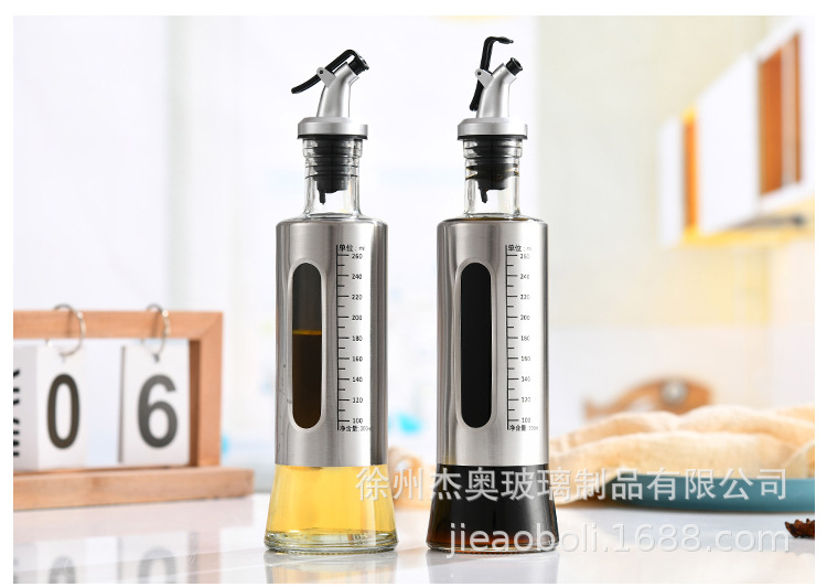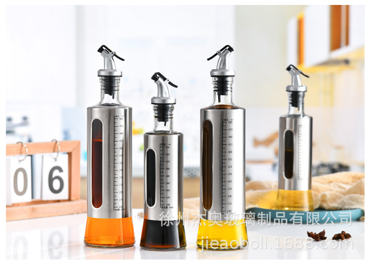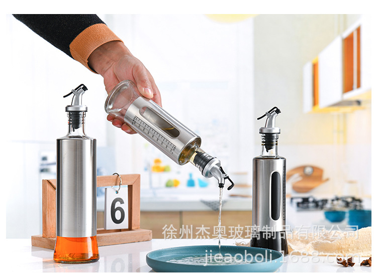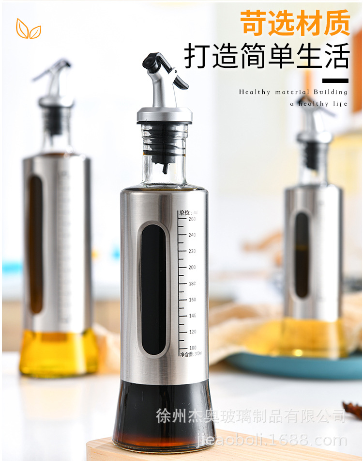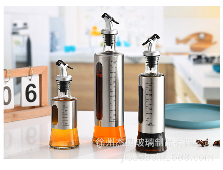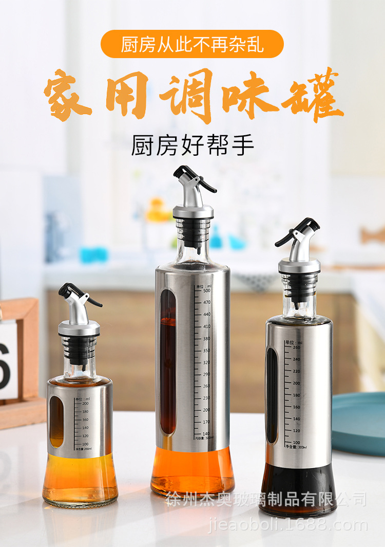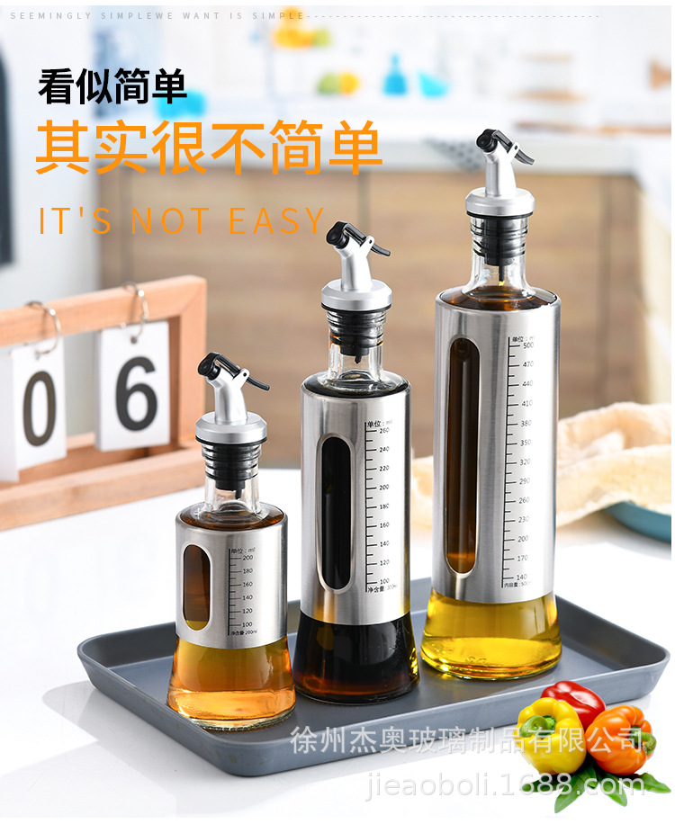 キッチンステンレス鋼オイルポットガラススケール漏れ防止大小オイルボトル醤油酢ボトル卸売調味料瓶