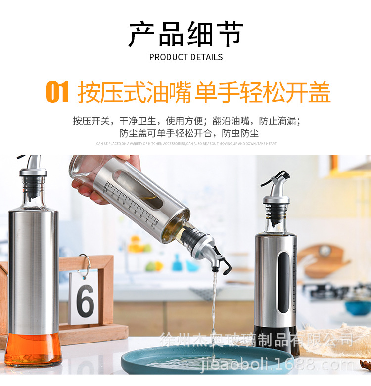 ステンレス油瓶家庭用厨房防漏ガラス油壺の目盛りは圧力式の材料と酒の醤油と酢の調味料の瓶を押して卸売りします。