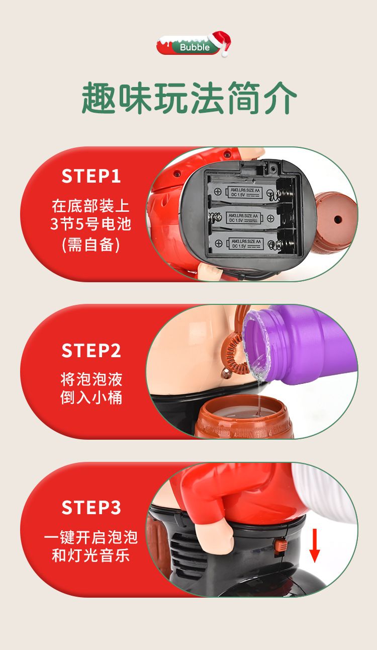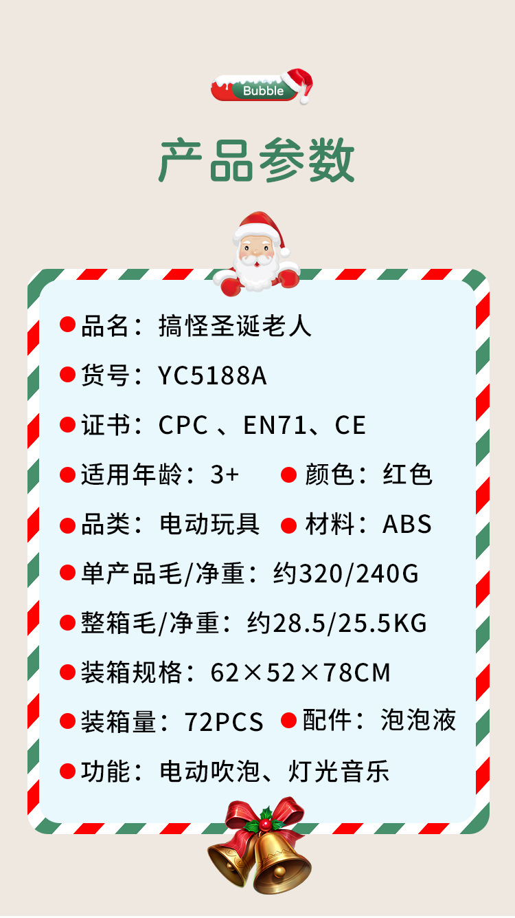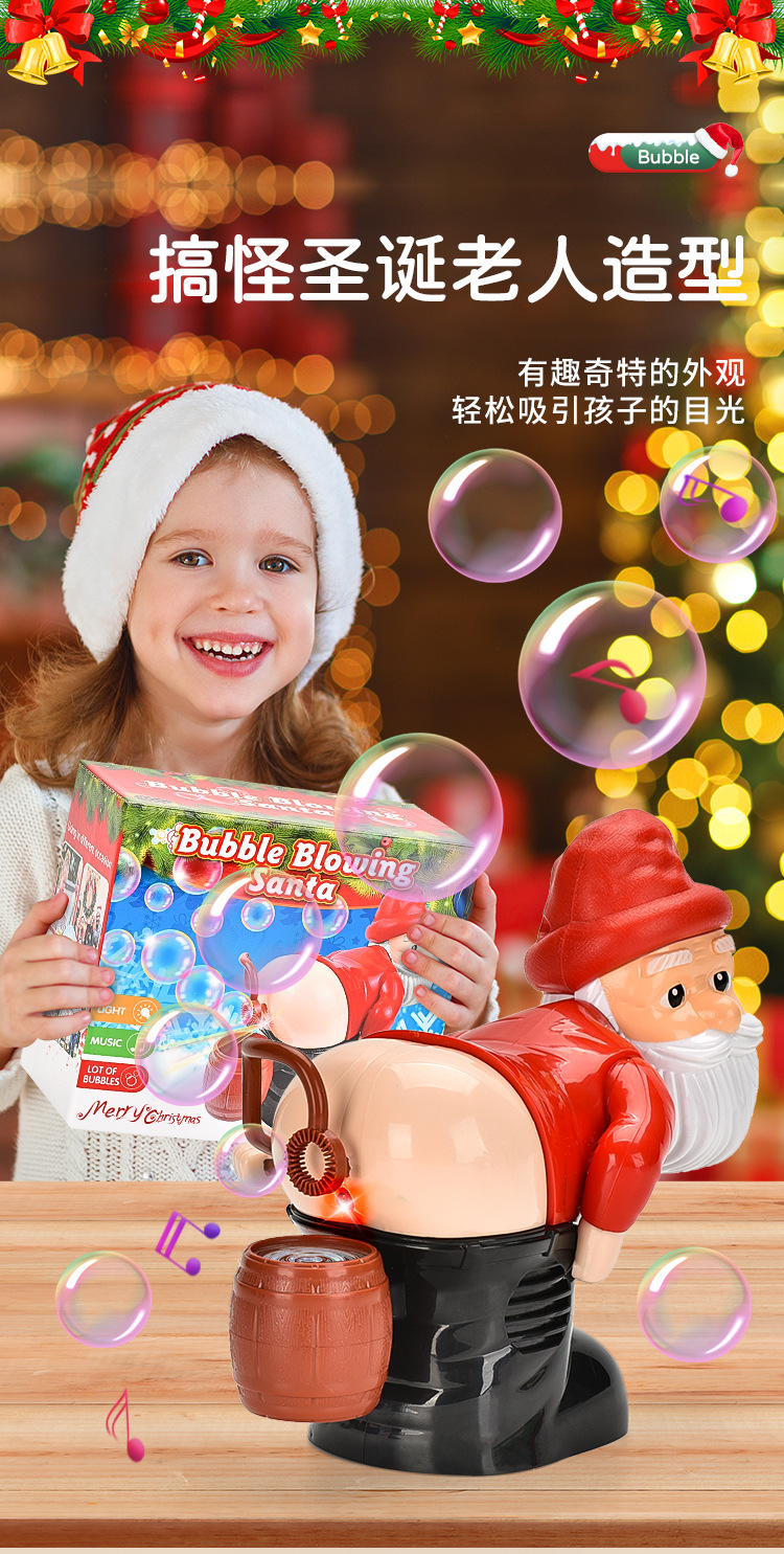 电动泡泡圣诞老人吹泡泡 带灯光音乐 搞怪圣诞老人电动吹泡泡玩具