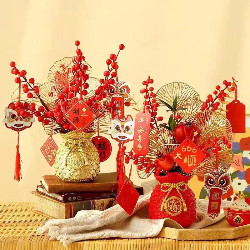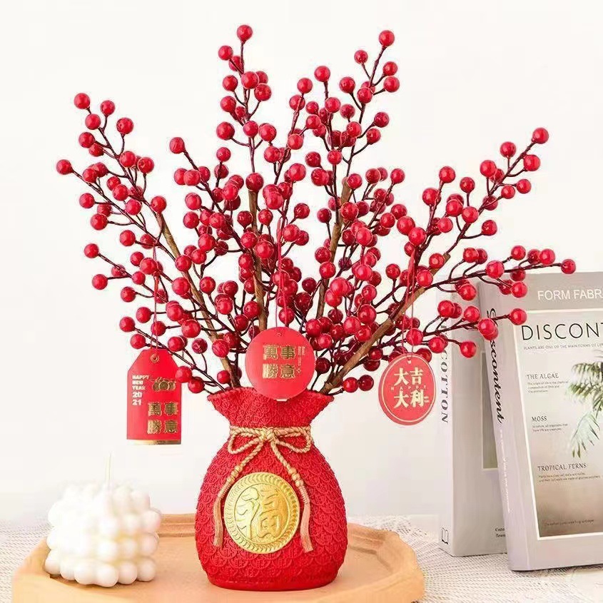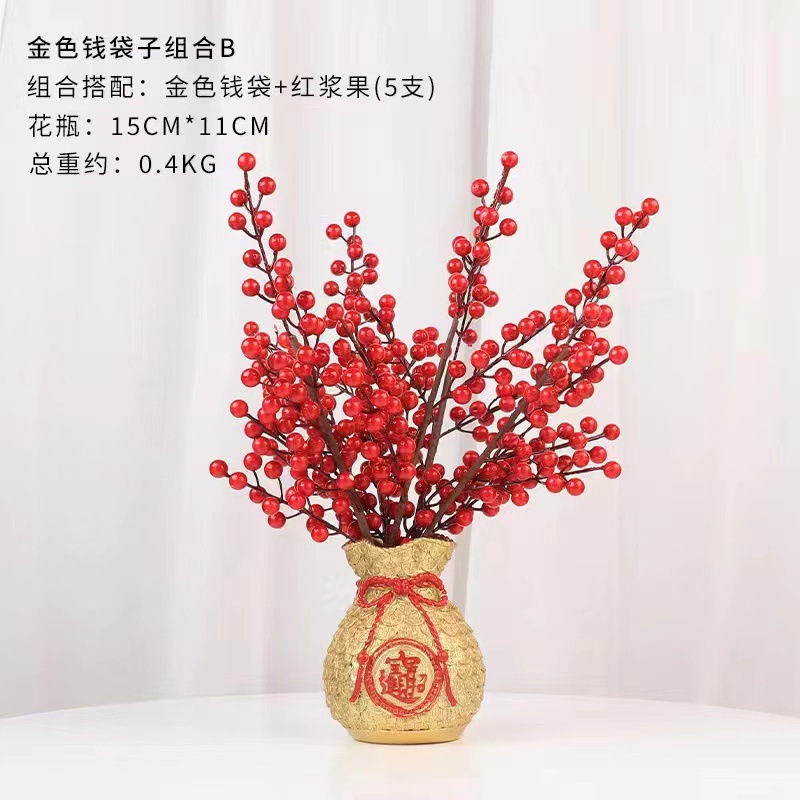 平口金福袋、マネーバッグ、小麦の穂、卸売リビングルームの装飾品、模擬花、赤い果実の花の装飾、開店祝いの装飾品