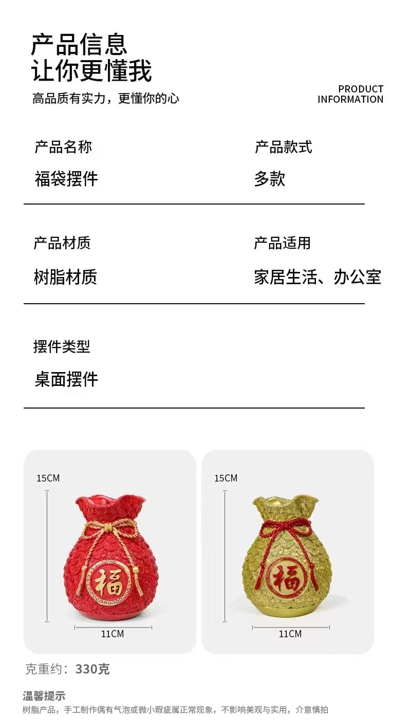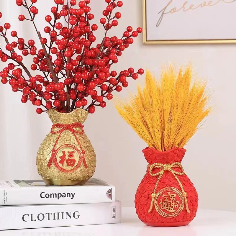 樹脂福袋花瓶置物財布麦穂紅果客間風水置物新年移転開業装飾品
