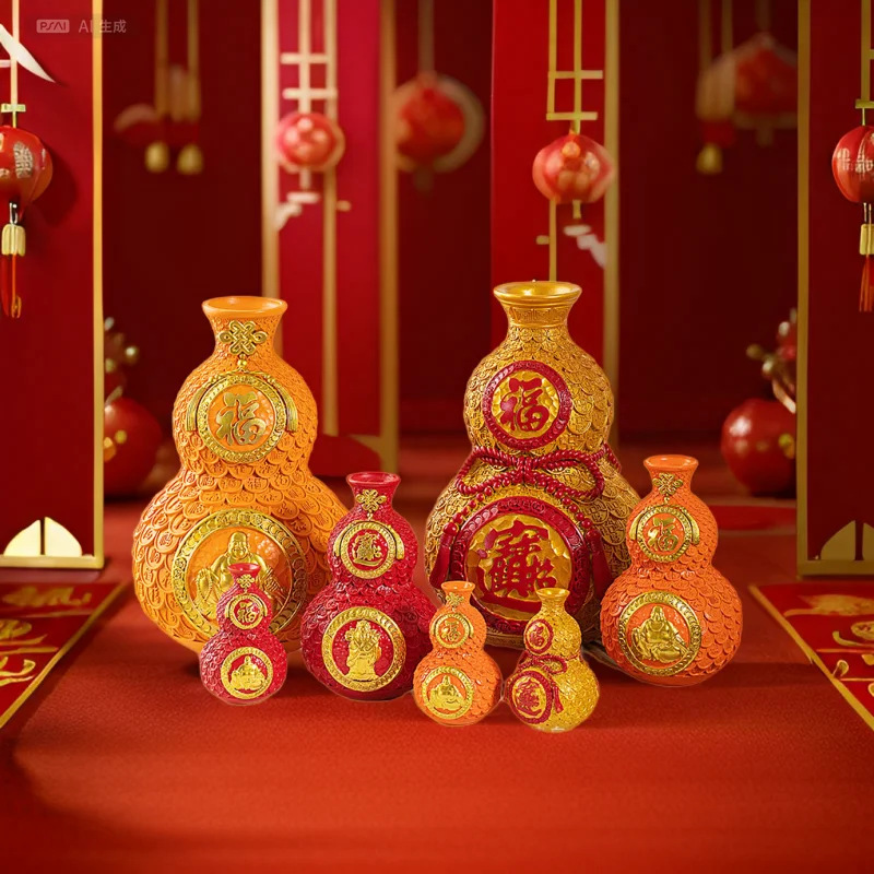 赤いヒョウタンの花瓶の創意的な樹脂の工芸品は客間の玄関の福禄の装飾品を飾って贈り物のお金の袋に引っ越します。