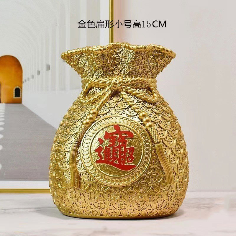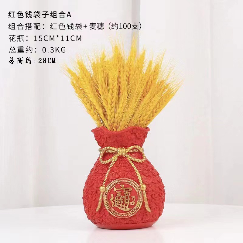 新型ネット紅中国式麦穂福袋花瓶樹脂置物家庭寓意貯金袋客間テレビキャビネット装飾