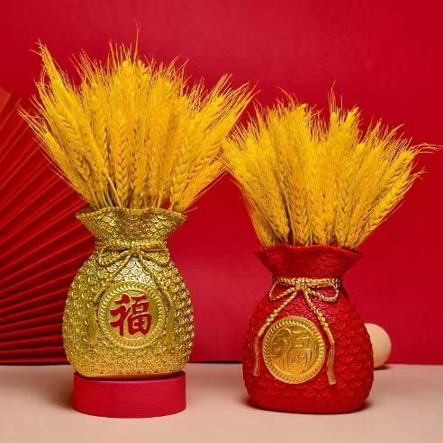 新年新築祝い福袋樹脂花瓶麦穂ドライフラワー装飾スーパーマーケット卸売花材ホームデコレーション置物
