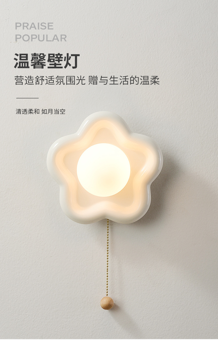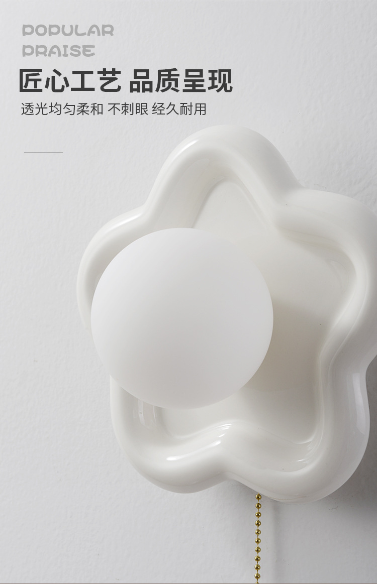 配線なし充電タイプの花の壁のライトのクリーム風の寝室の書斎のledベッドのヘッドライトの暖かい乳の白い陶磁器の壁の明かり