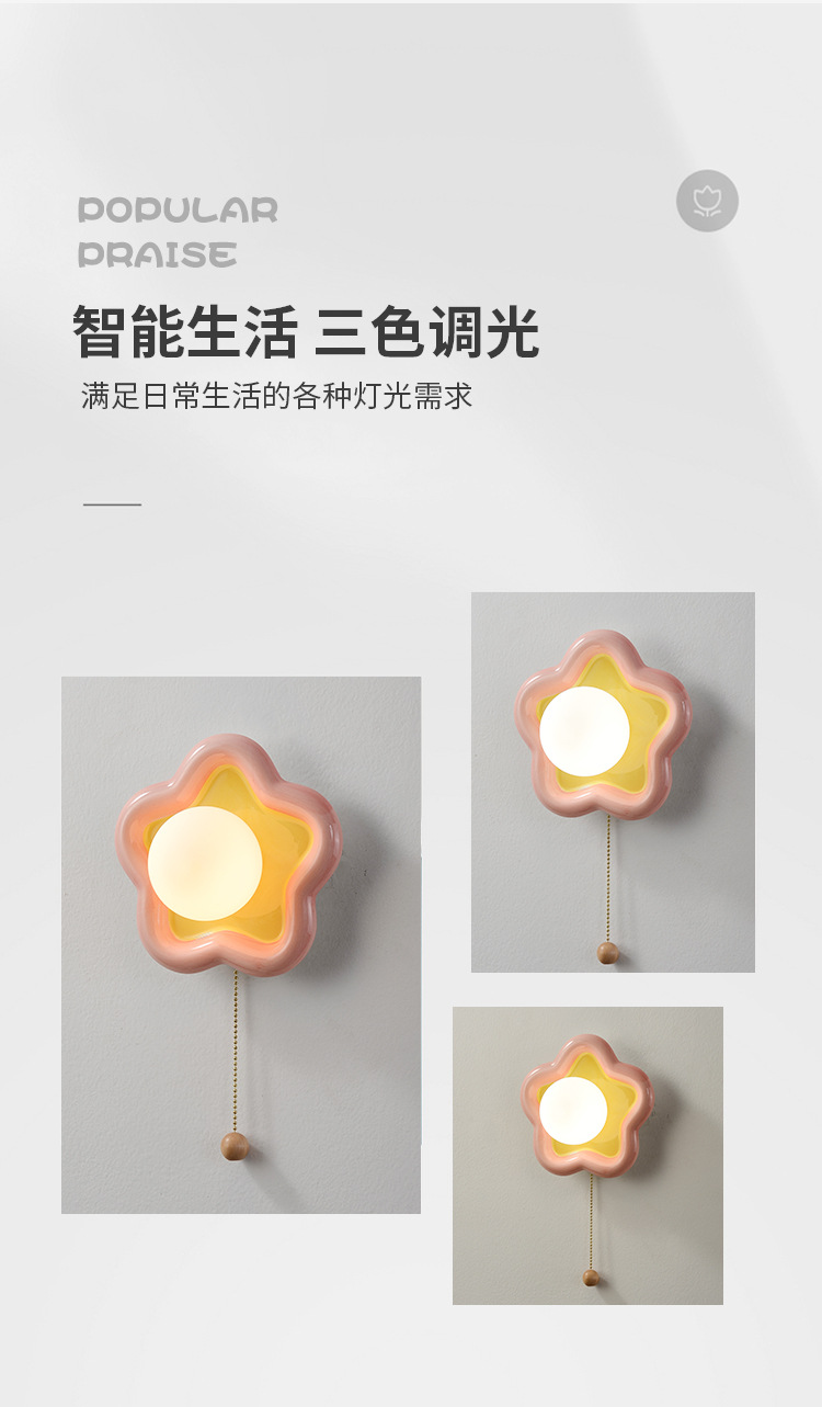 配線不要の充電式フラワーウォールランプクリームスタイル寝室書斎LEDベッドサイドランプ暖かい廊下通路サンウォールランプ