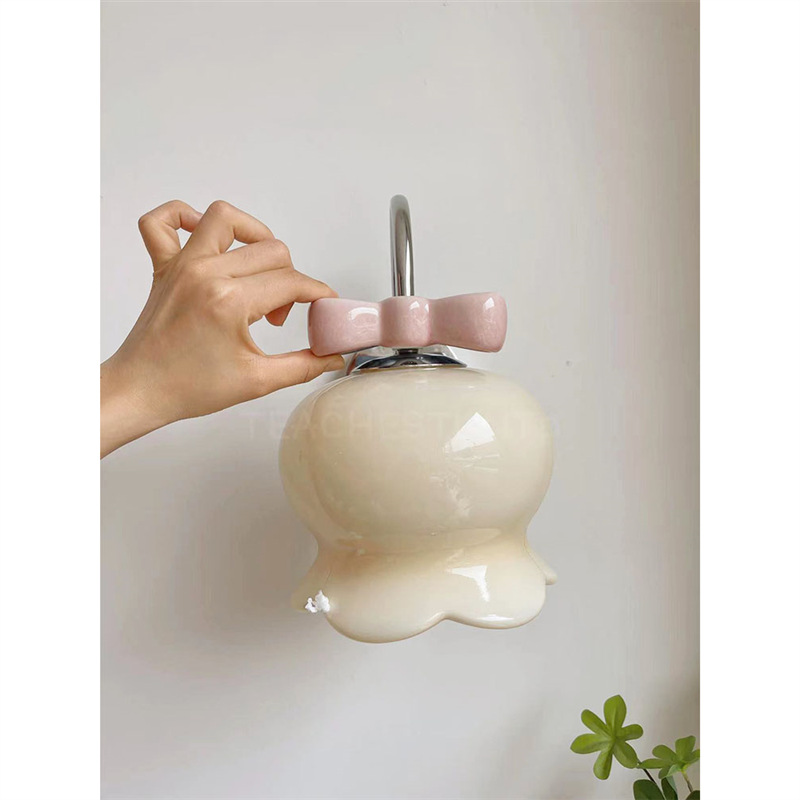 フランス風シンプル蝶結びクリーム風鈴蘭現代ガラス壁灯廊下通路ベッド寝室