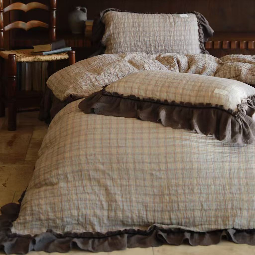 中古宅寂风四季款双层纱床单被套四件套全棉纯棉花边柔软裸睡床品