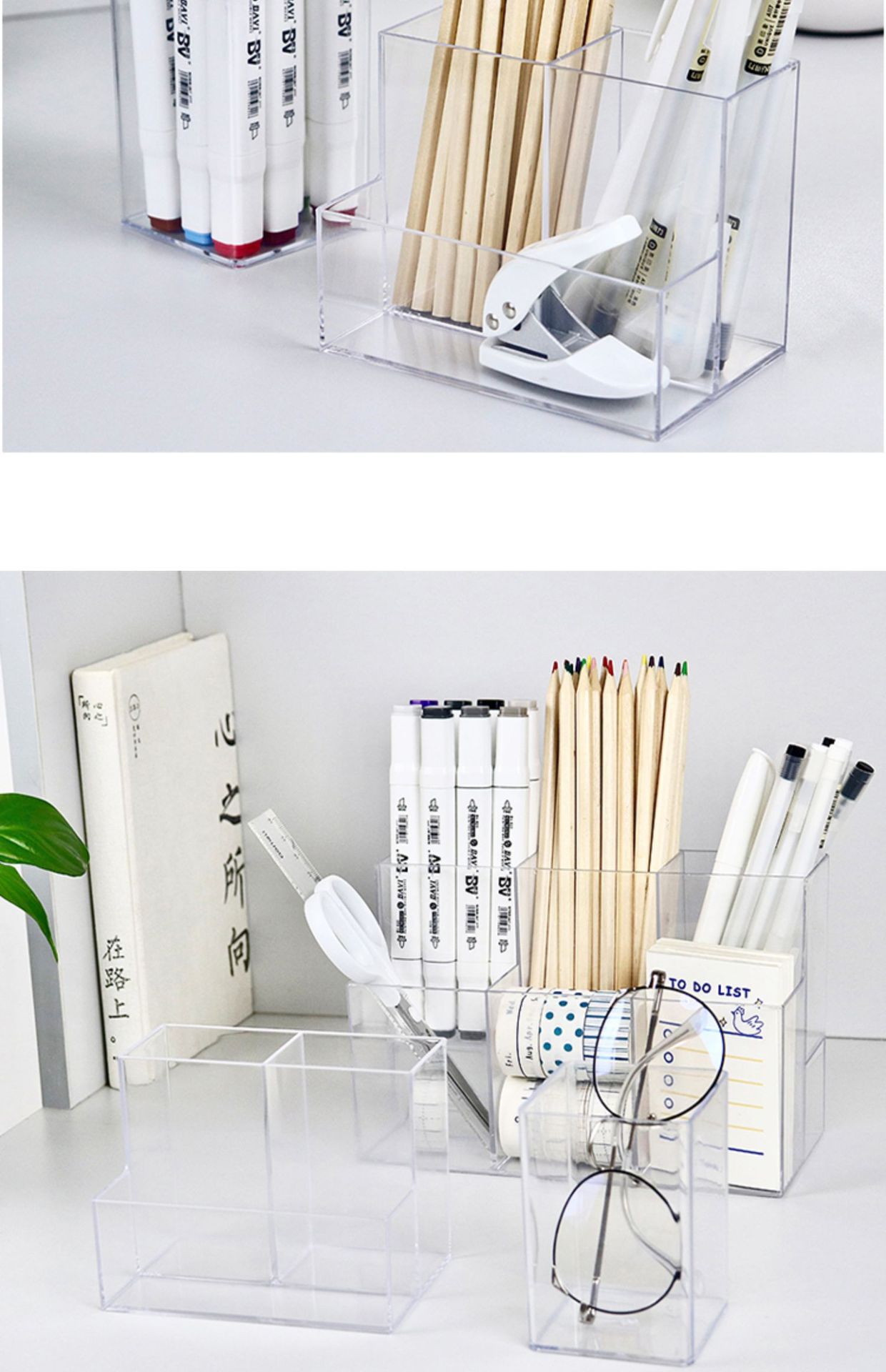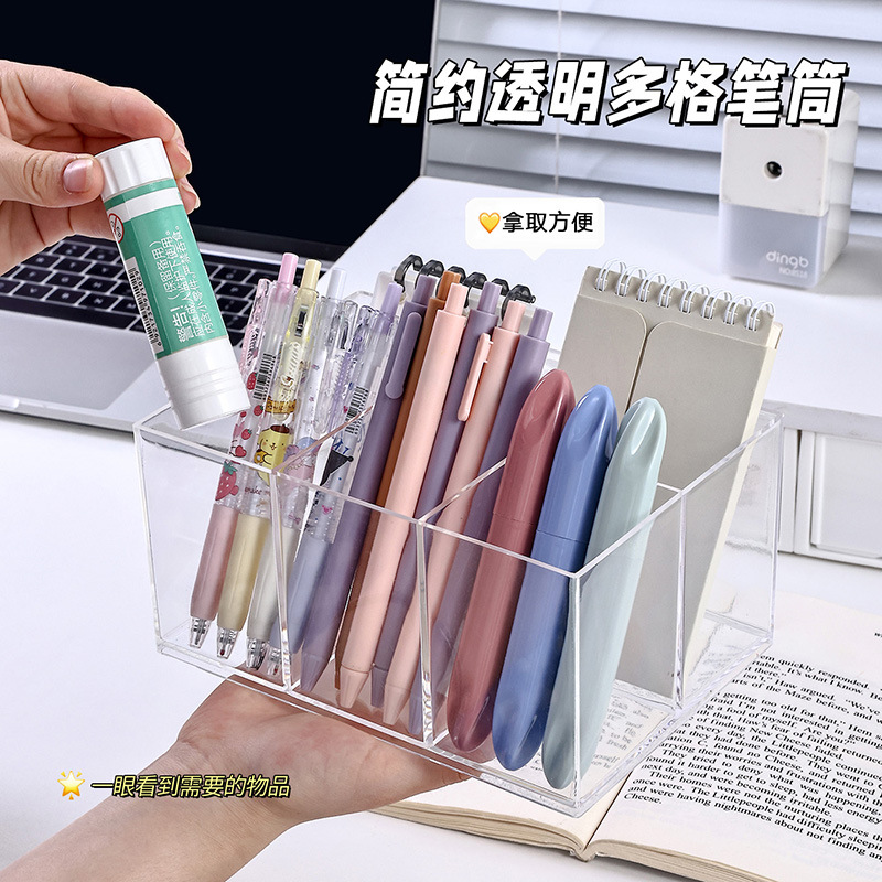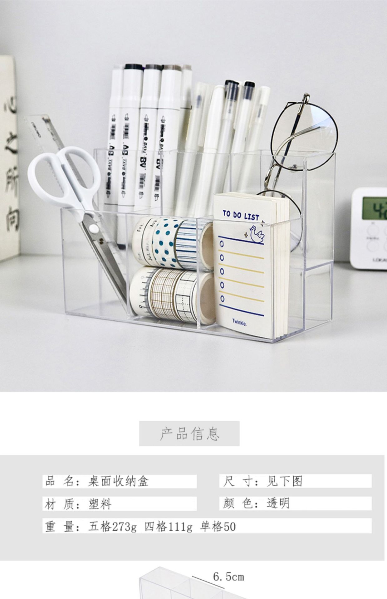 简约透明多格笔筒ins风桌面大容量方形文具笔筒笔架办公室收纳筒