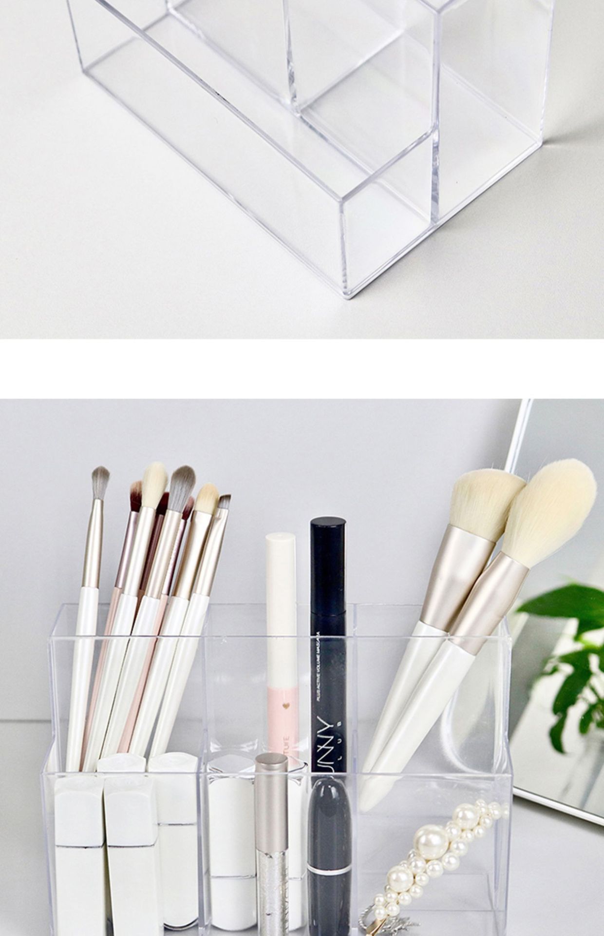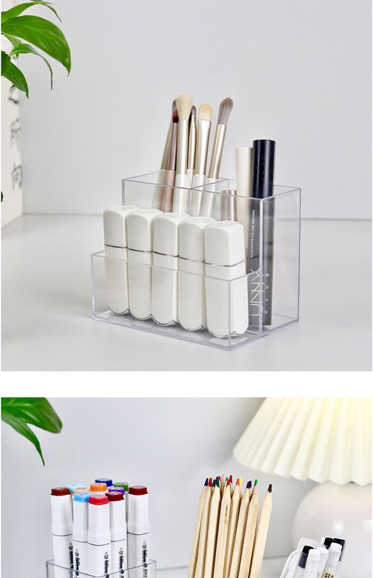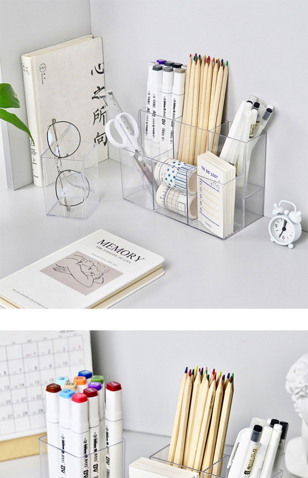 简约透明多格笔筒ins风桌面大容量方形文具笔筒笔架办公室收纳筒