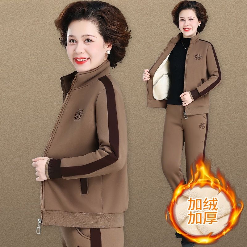 妈妈运动套装加绒加厚中老年秋冬外套女50岁60中年冬季大码两件套