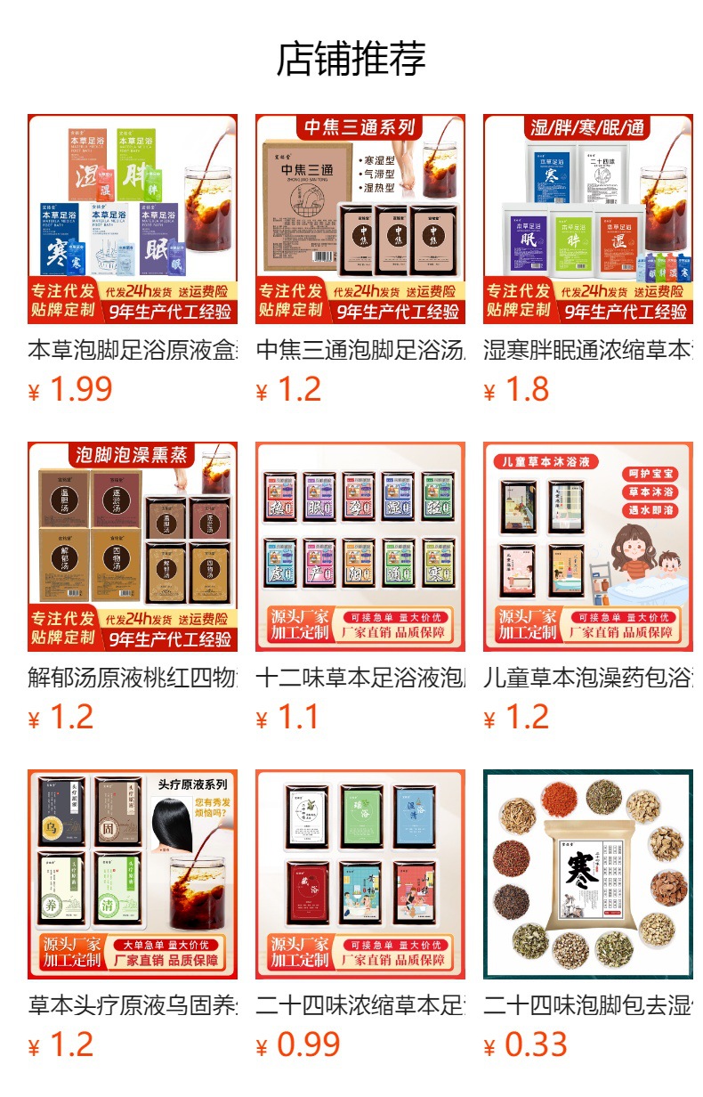 二十四味足湯薬包卸売、艾草足湯パック、老生姜紅花足湯粉、張嘉妮足湯パック、足湯
