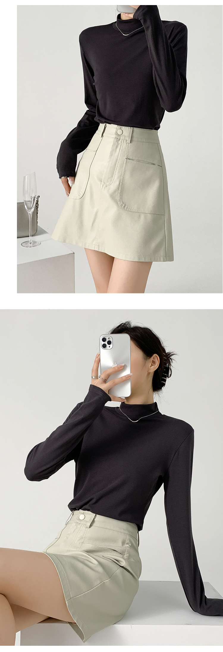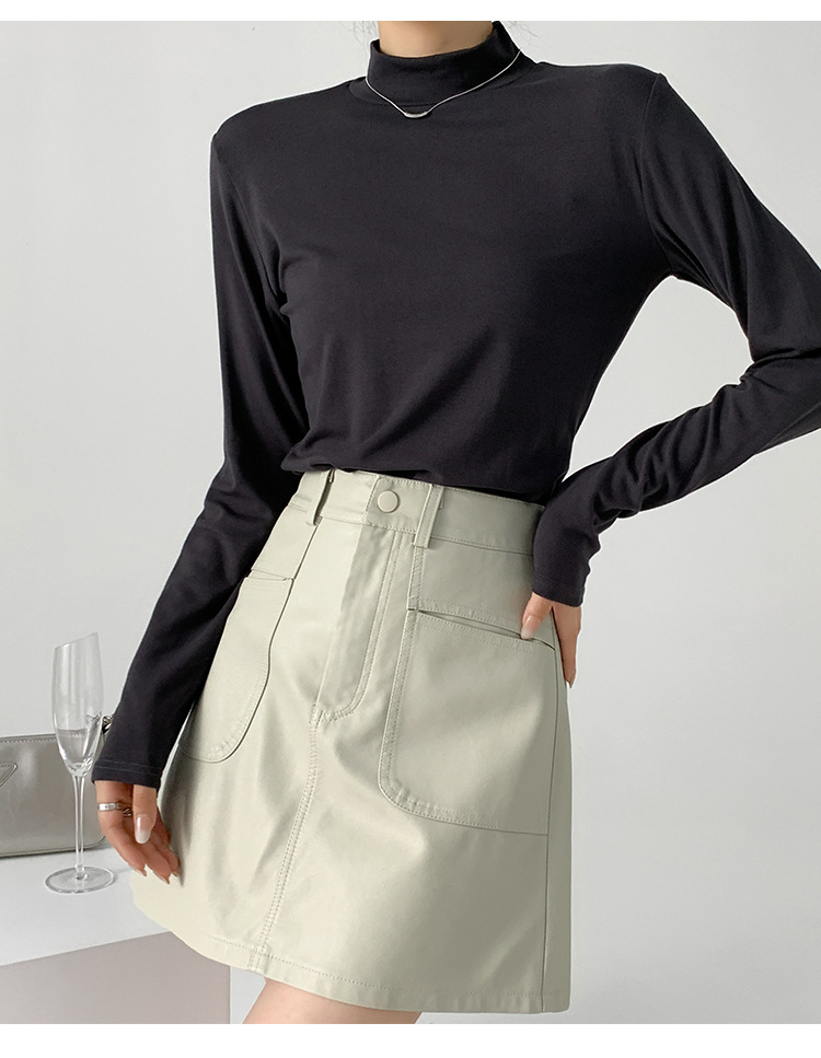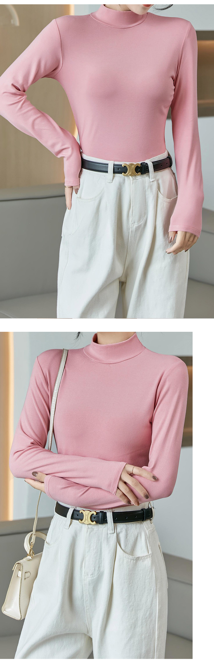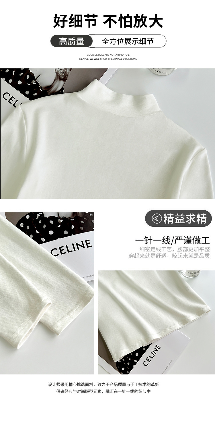 咖色半高领长袖打底衫女秋冬新款内搭显瘦t恤高级感修身正肩上衣