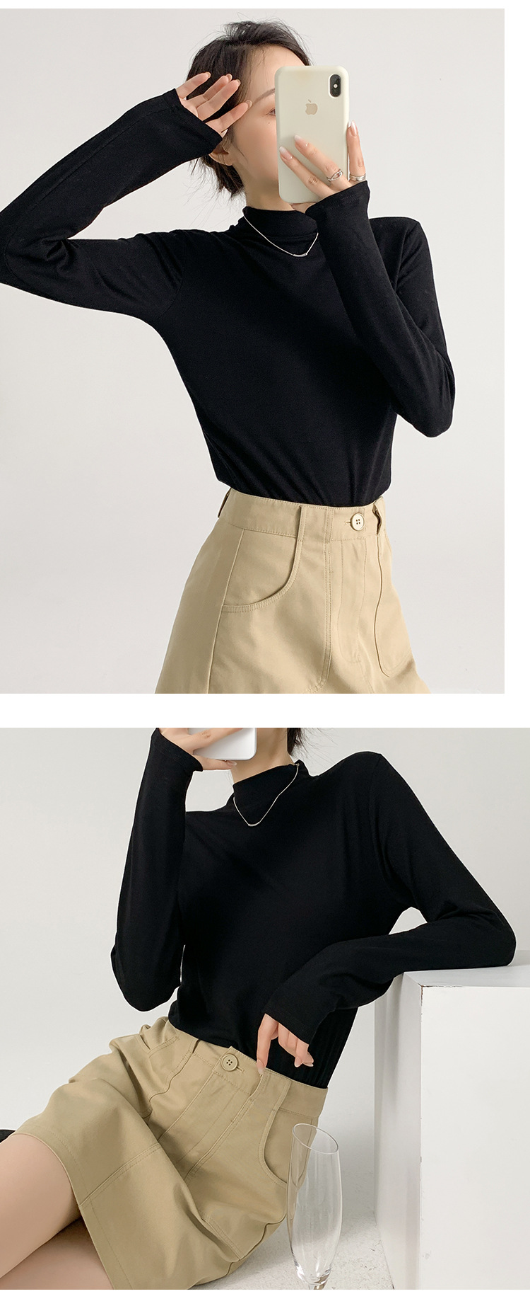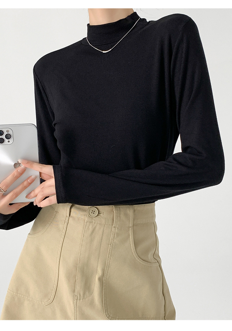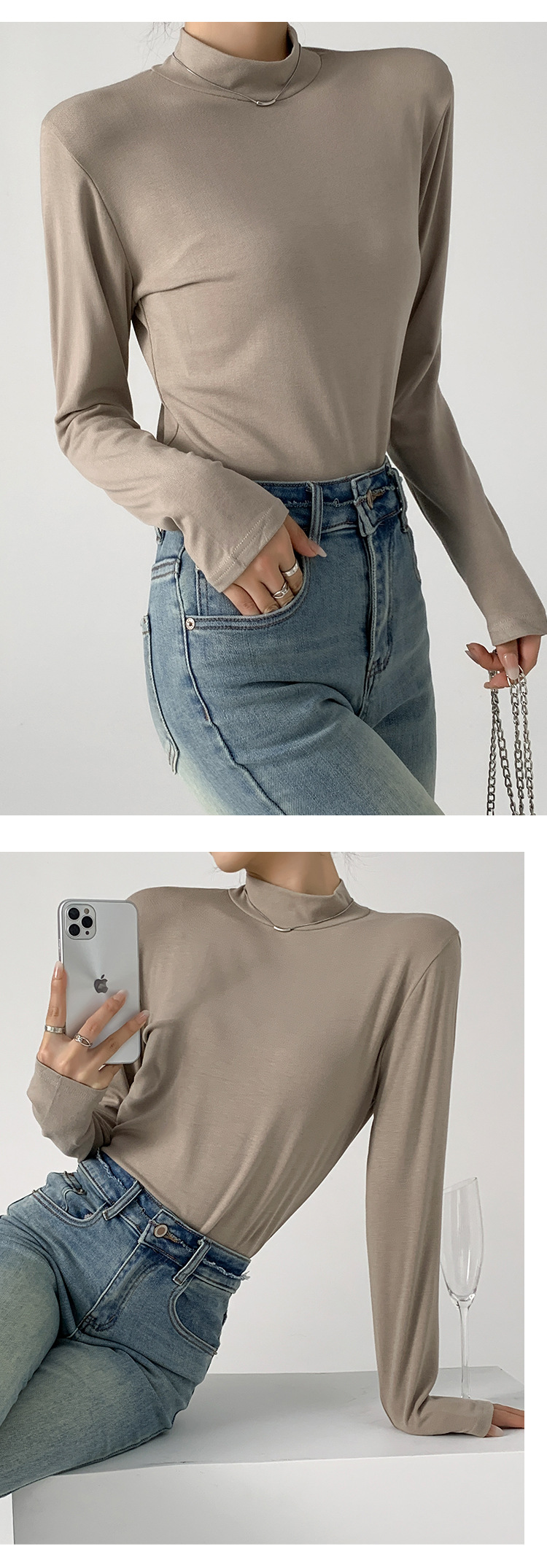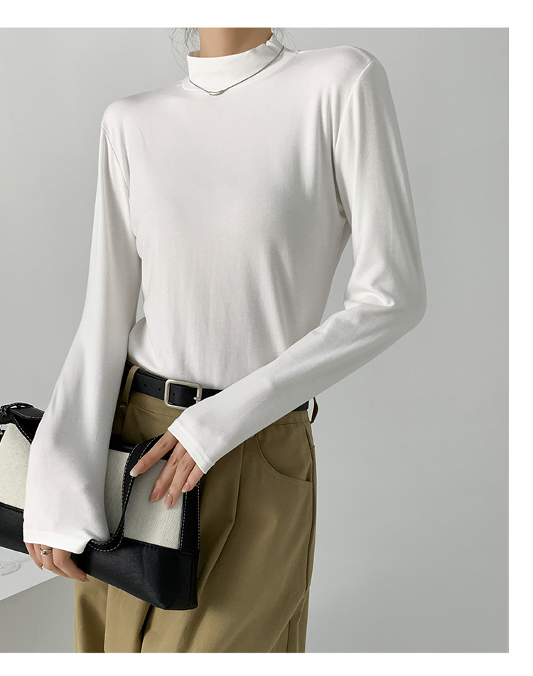 女性用モーダルハーフタートルネックトップス、春と秋の新作、多用途でスリムな長袖Tシャツ、痩身プロテインボトムスシャツ