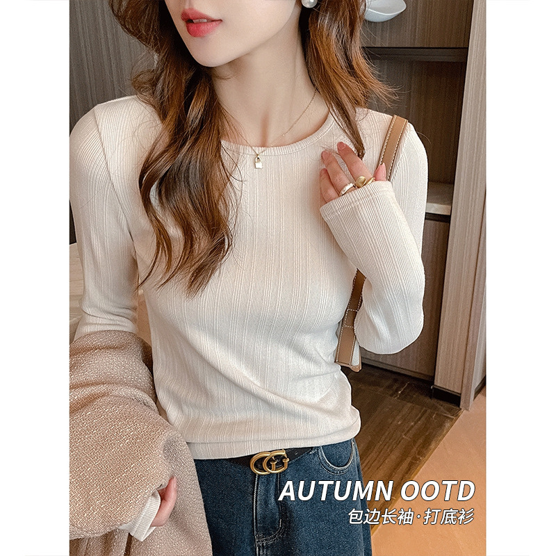包边打底衫女秋冬2025新款修身显瘦圆领长袖t恤百搭针织正肩上衣