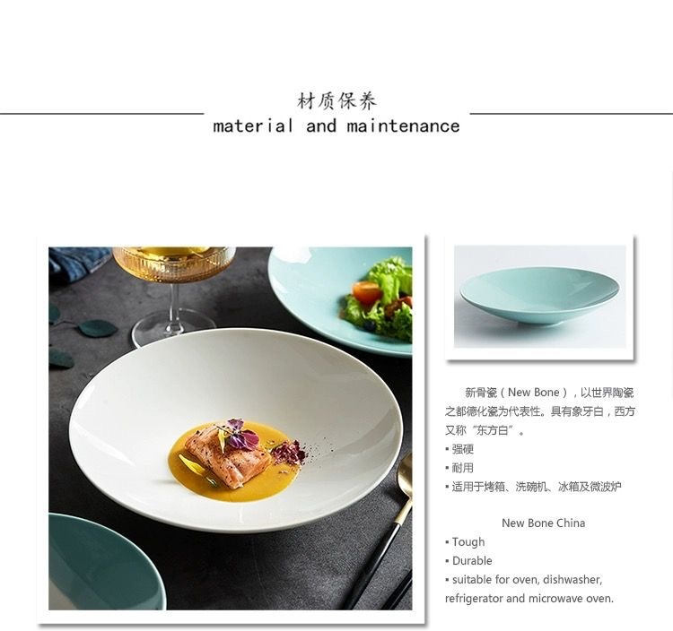 ホテルレストランホテルクラブハウス食器皿純白高級感洋食皿ステーキ皿パスタ皿陶磁器料理皿