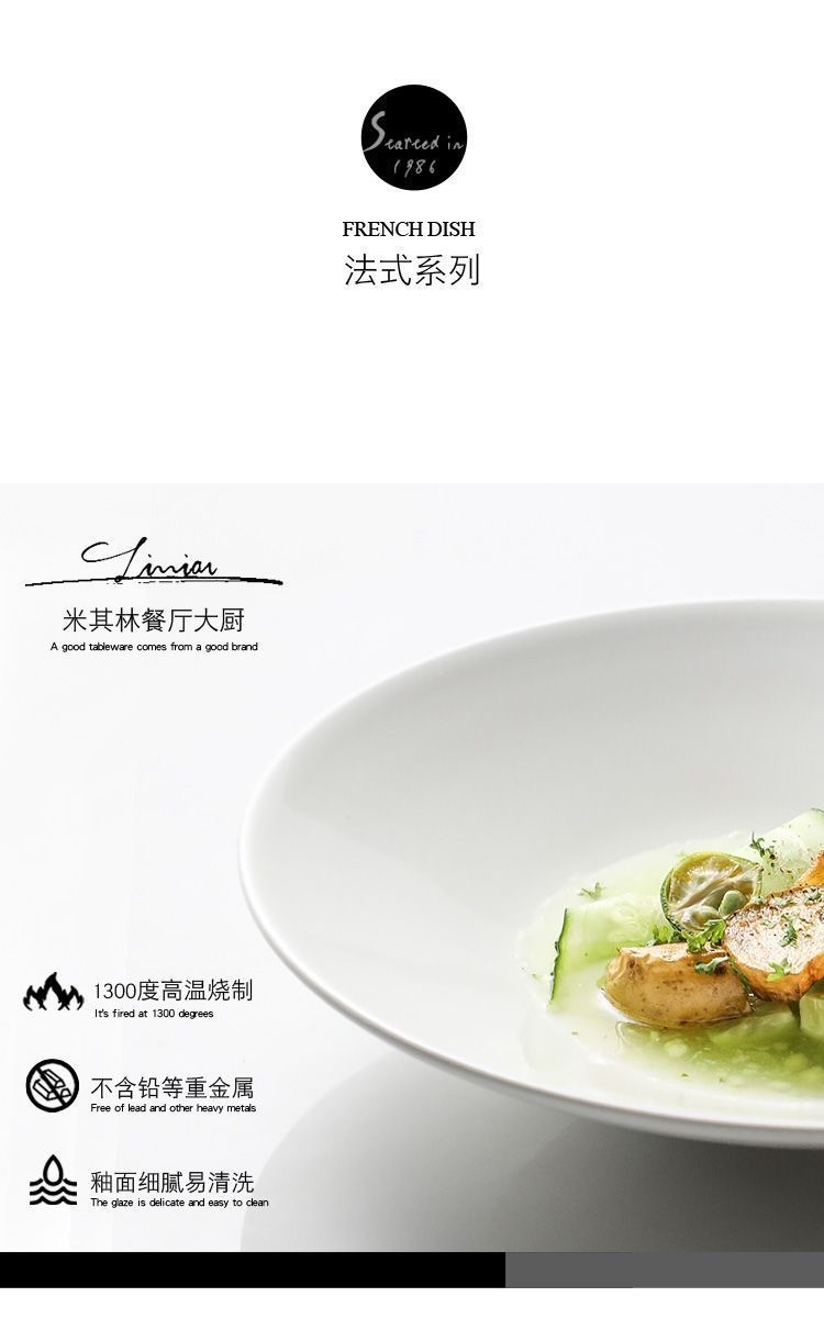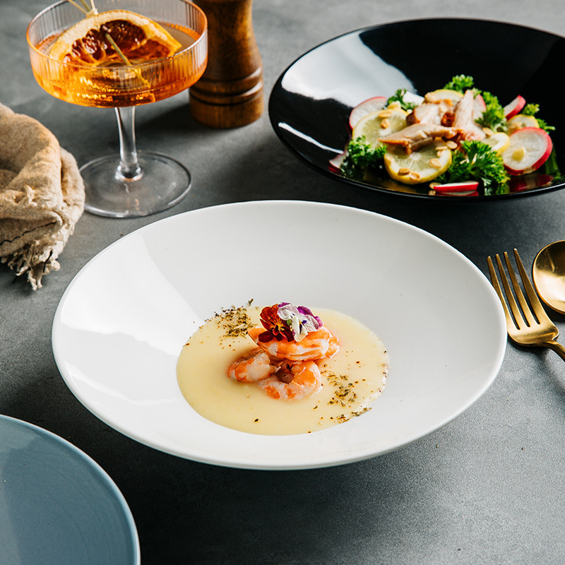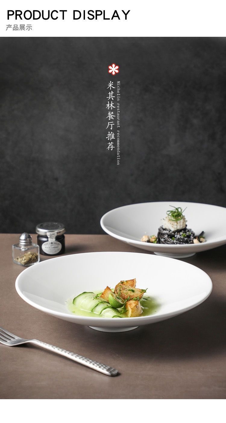 フランス深皿レストランホテル食器創意高級麺碗白色シンプル陶磁器スープ皿大サイズ日本料理皿