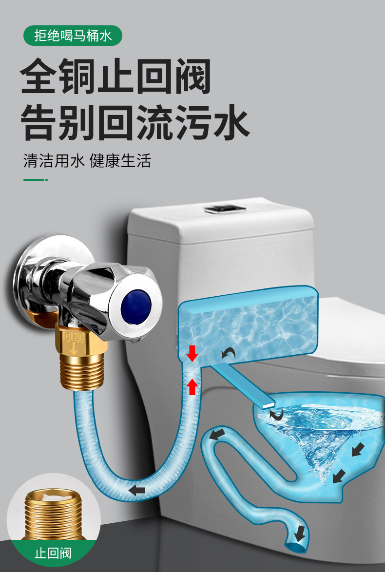 马桶止回阀不锈钢防反水马桶水倒流止水阀卫生间马桶配件止回阀