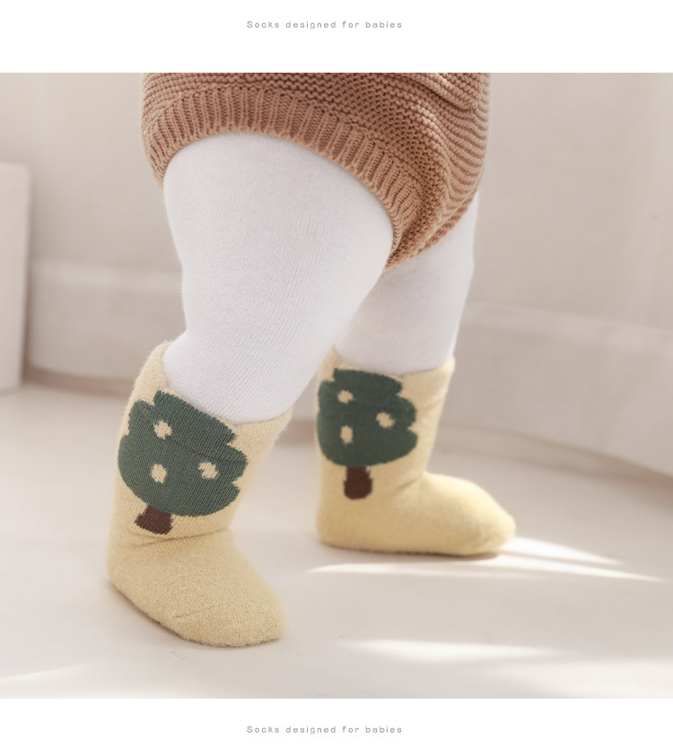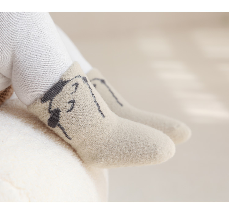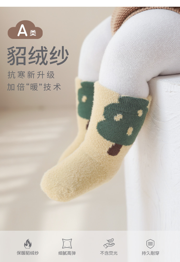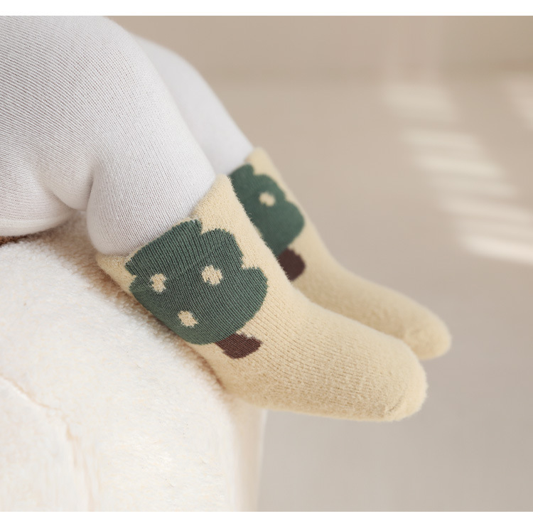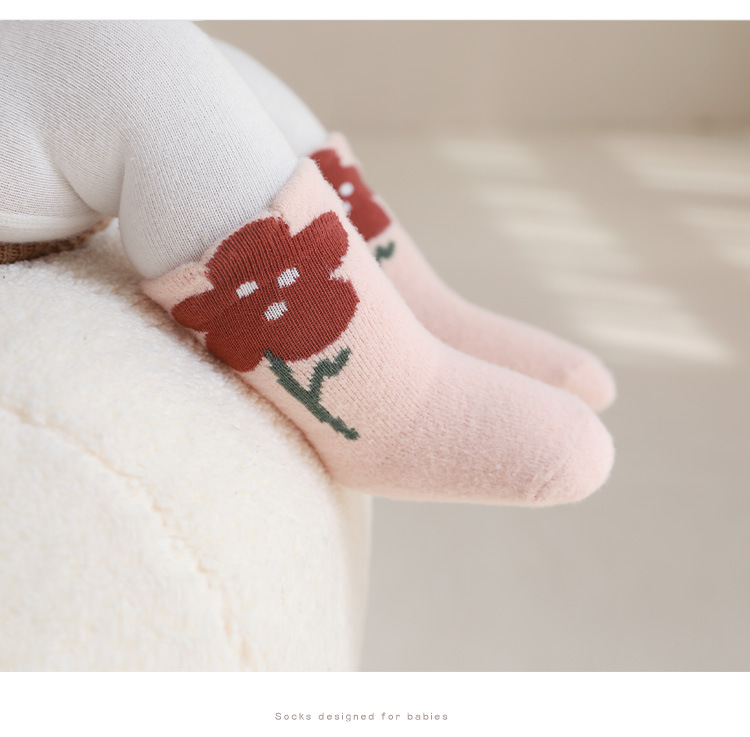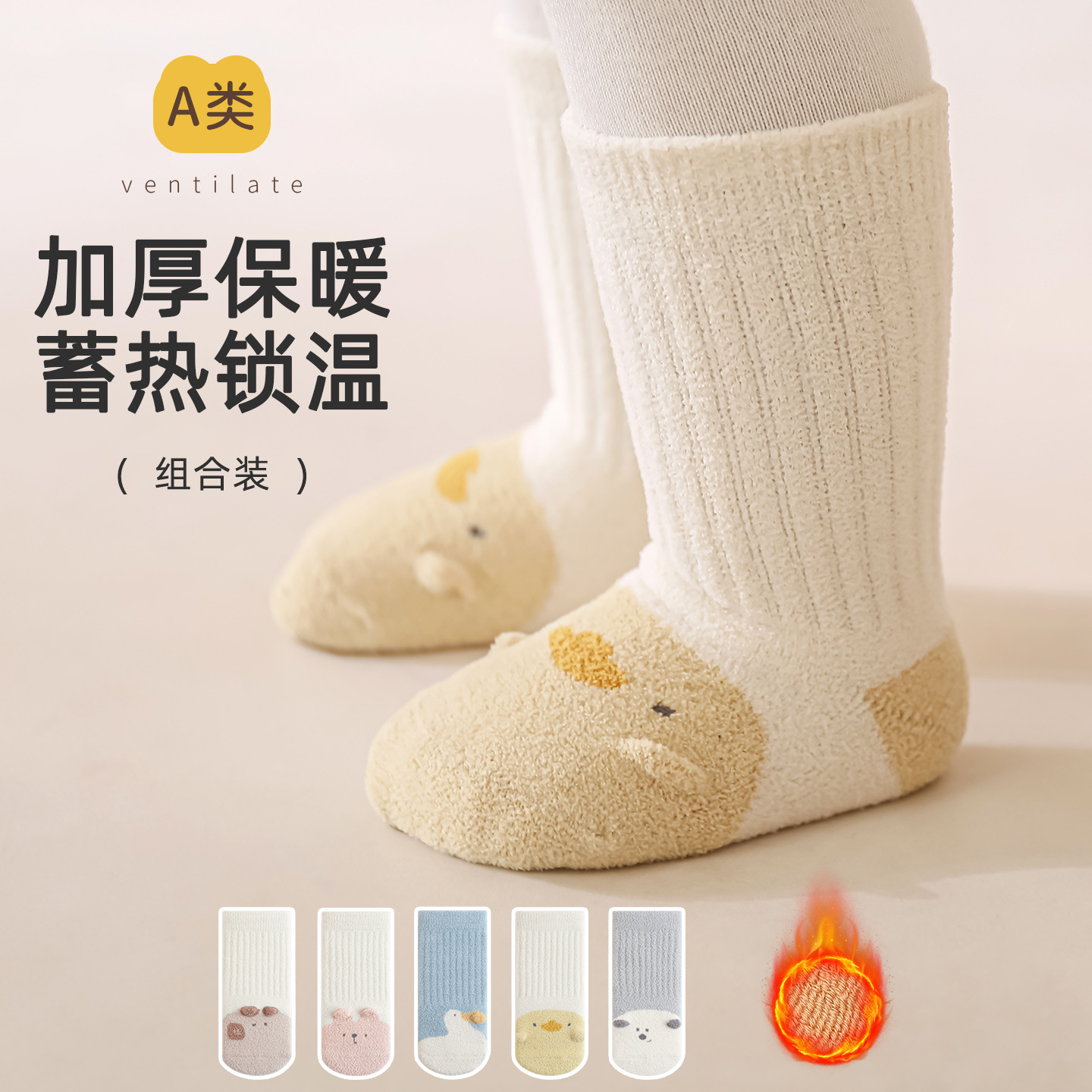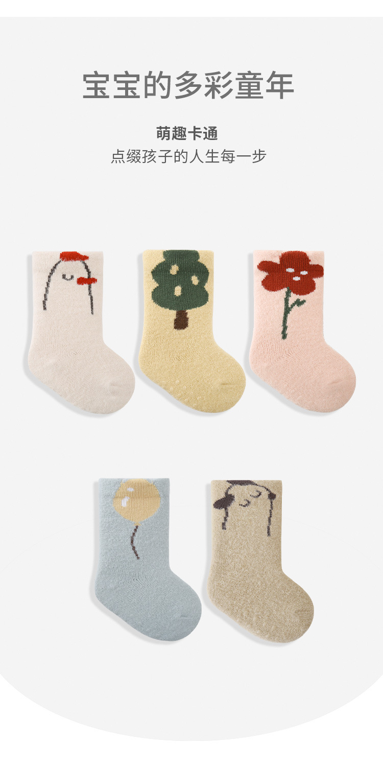 宝宝袜子秋冬加厚加绒立体卡通无骨松口婴儿男女童中筒婴儿袜子