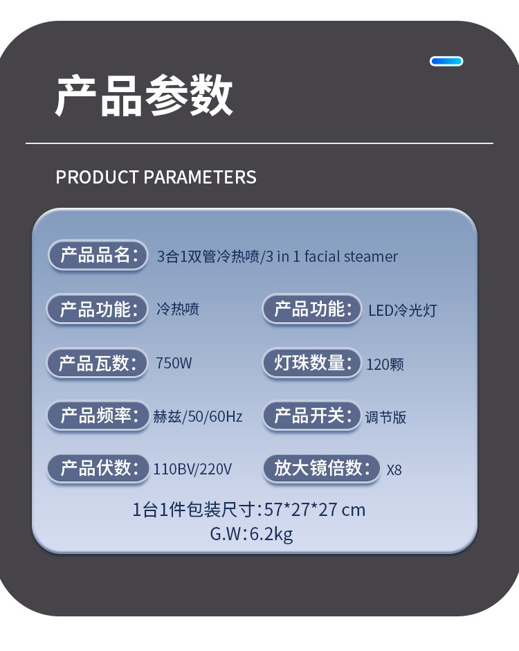 3合1双管冷熱スプレー美容専用熱スプレー美容器院用蒸顔器院用蒸顔器補水器