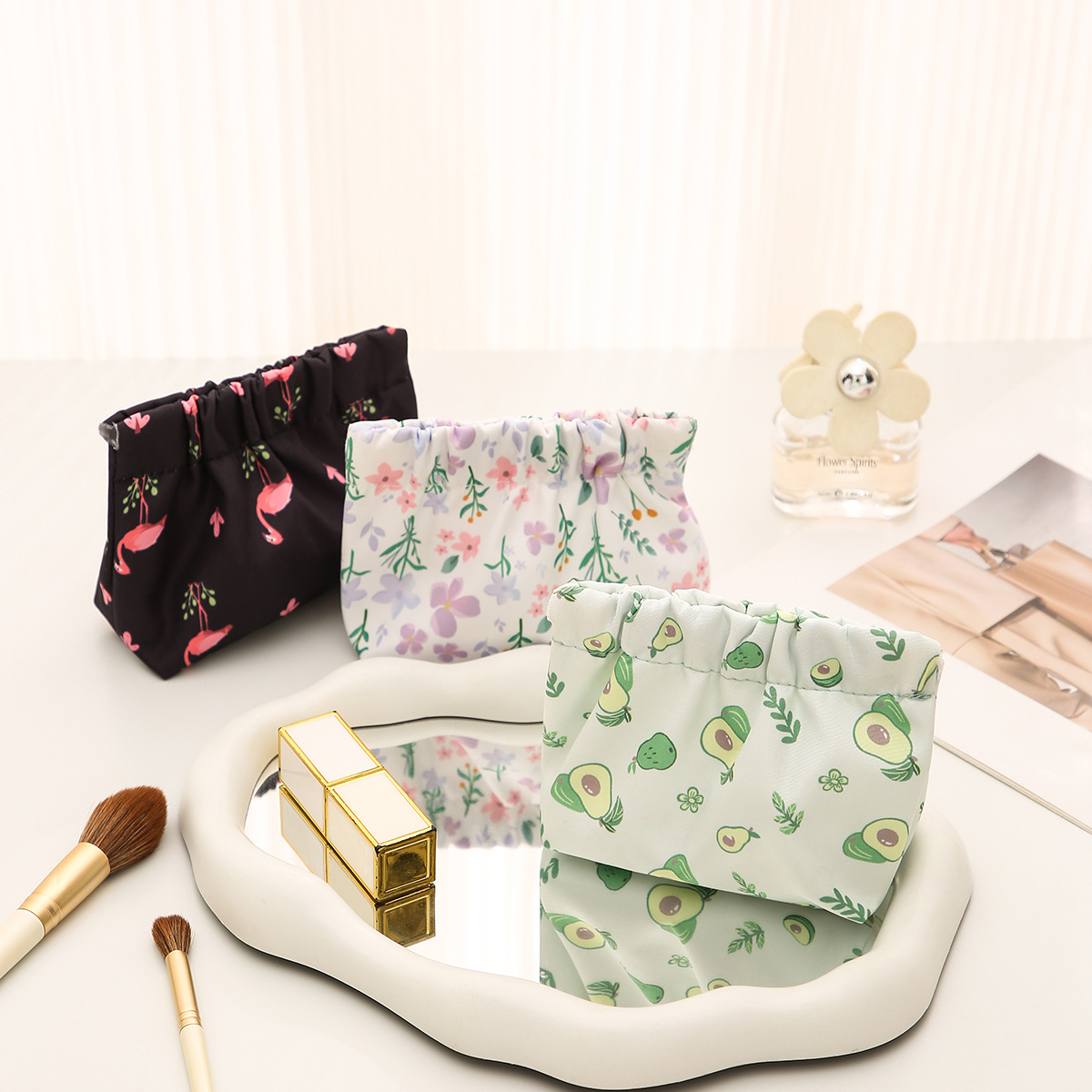 防水弹片收纳包自动闭合印花化妆包便携式时尚口红包零钱包随身带