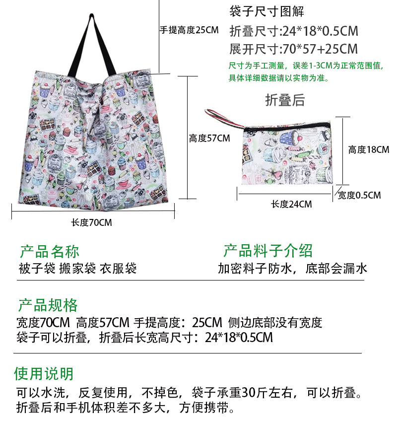 日韓大容量折り畳み可能なショッピングバッグ軽量スーパーエコバッグ携帯防水買い物バッグファッション手提げ袋