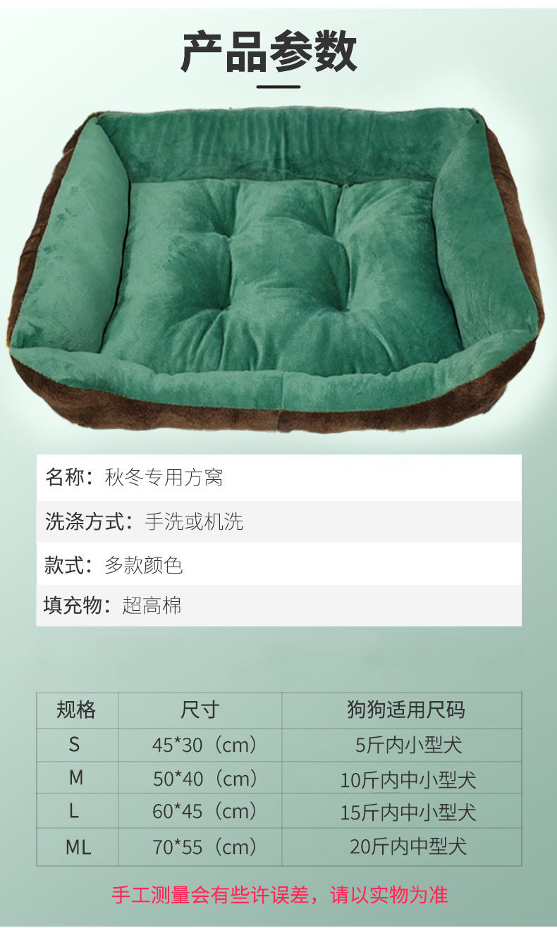 狗窝冬季保暖冬天睡觉猫窝长方形四季通用狗狗加厚垫子宠物床用品