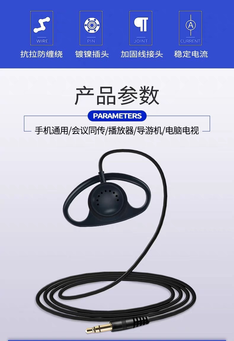 クロスボーダー片方解説器ヘッドホン有線会議同時通訳ヘッドホンガイド3.5翻訳ヘッドホンd型耳掛け