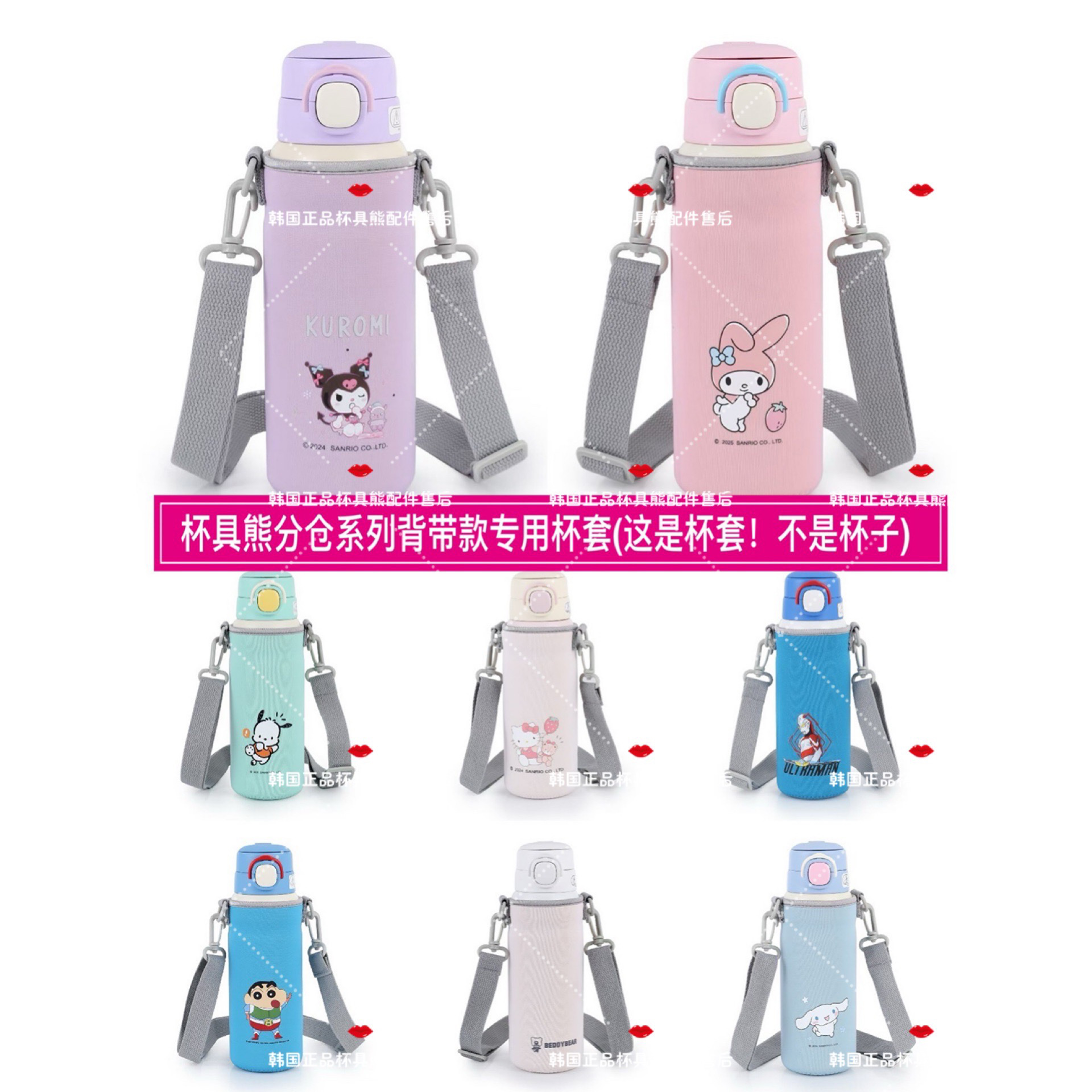 杯具熊530ML分仓儿童学生双饮保温杯专用卡通背带款斜挎杯套配件