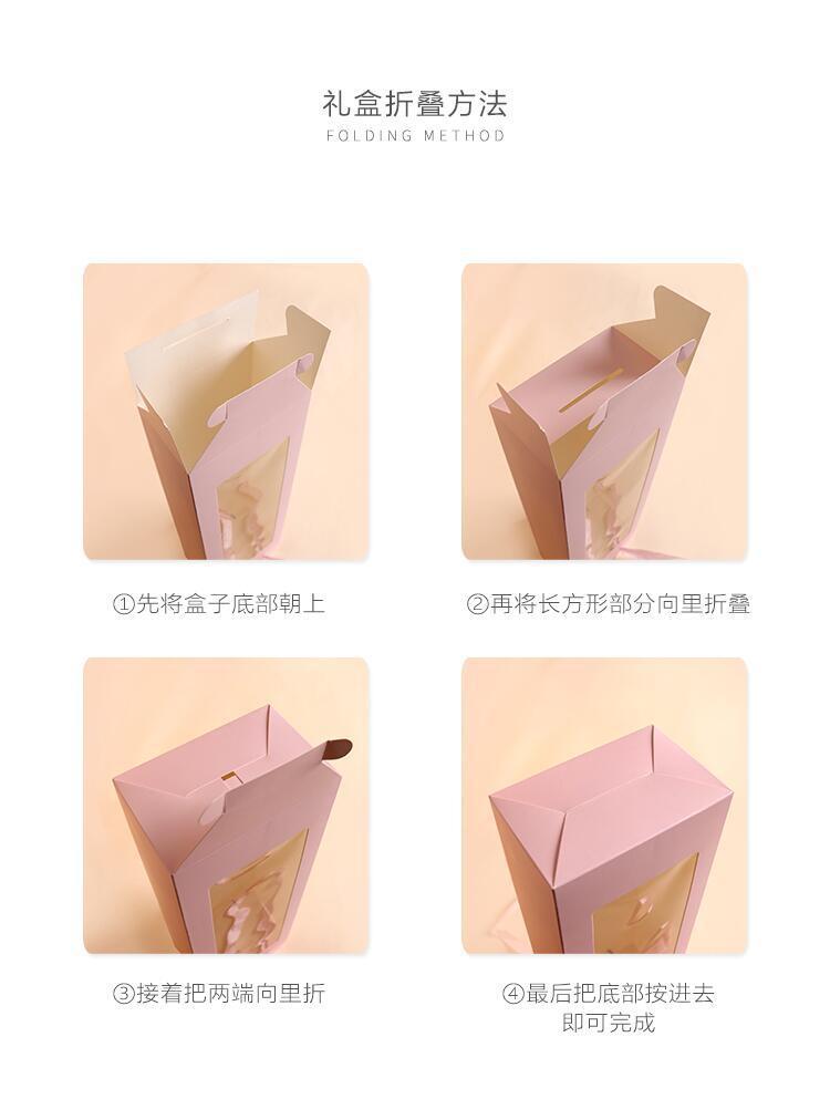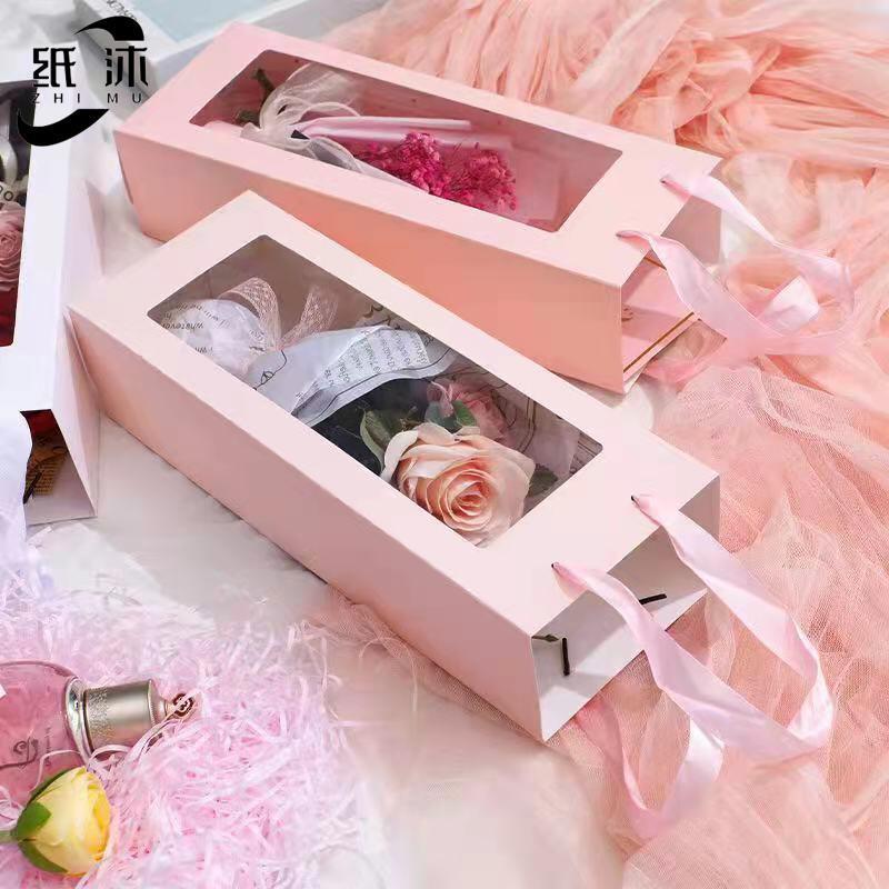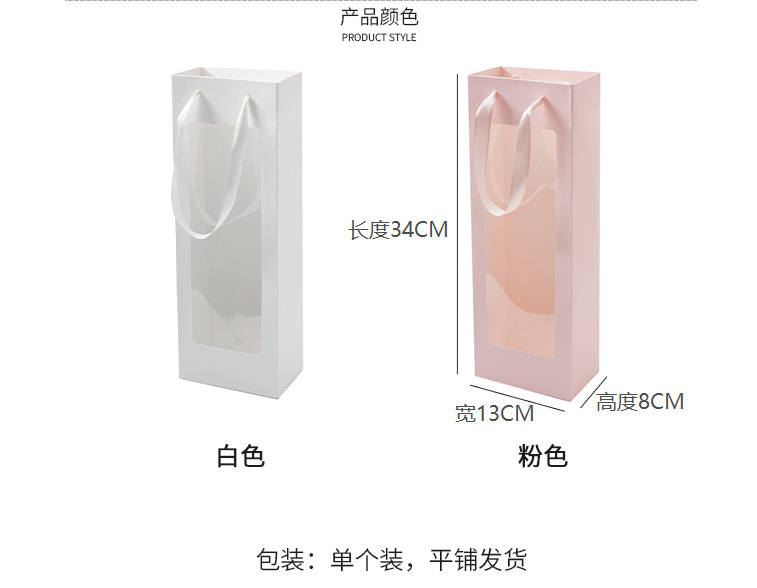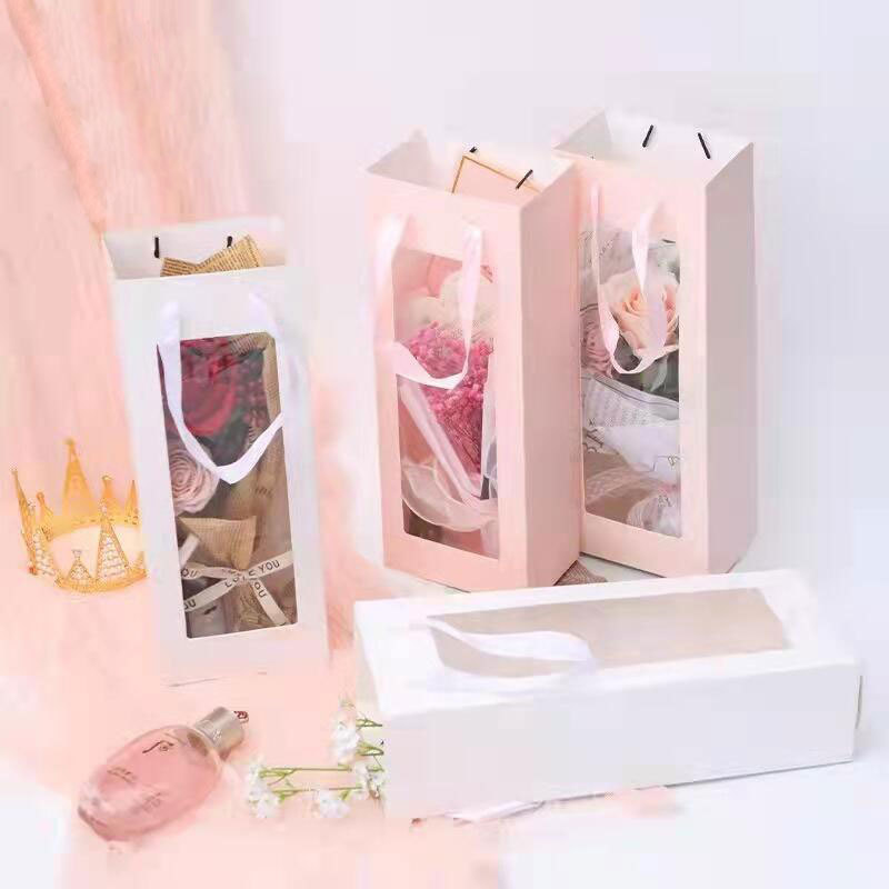 花束包装袋、一輪のバラ用OPP窓付きフラワーボックスバッグ、バレンタインデーの花束バッグ、花の持ち運び用包装