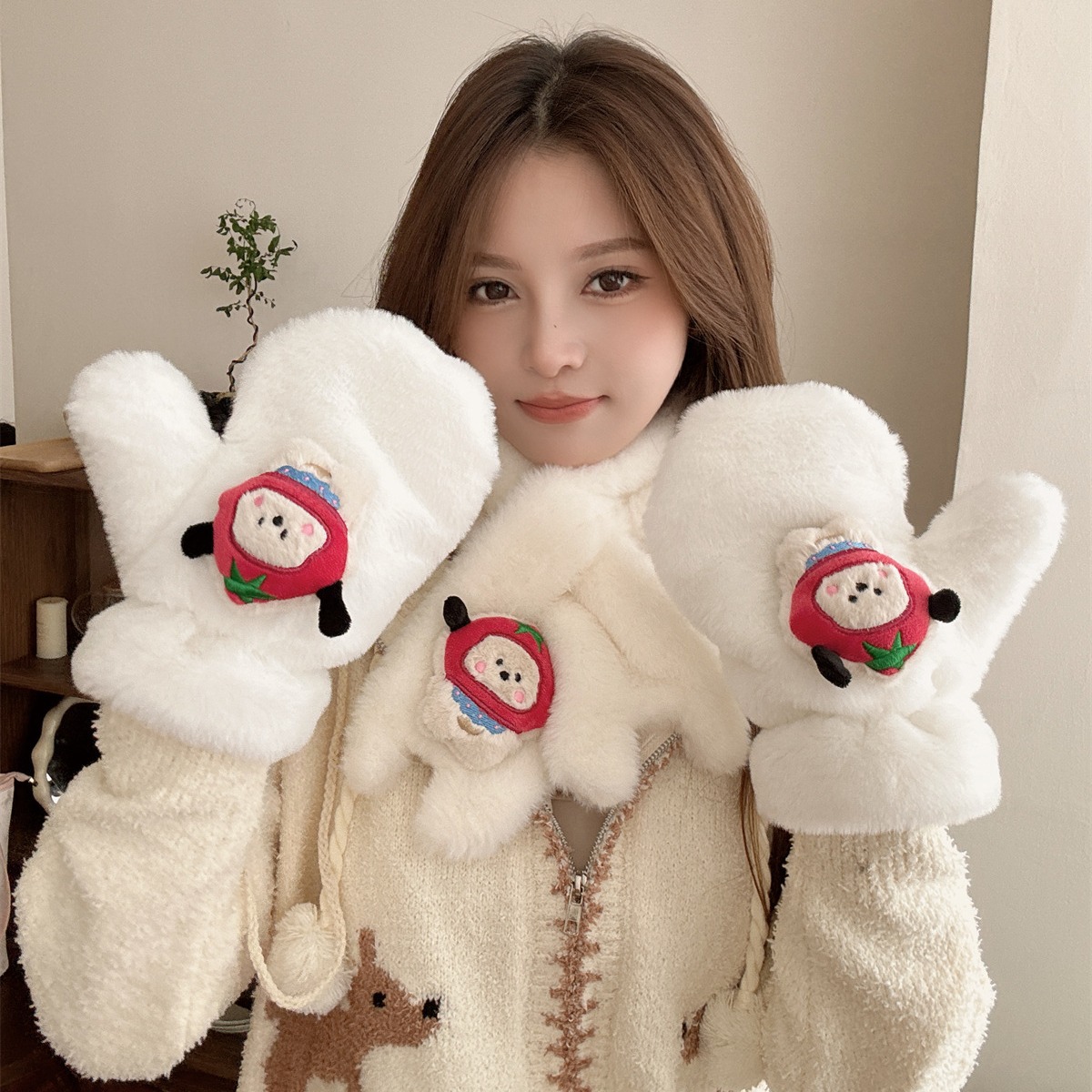 新しいかわいい漫画ぬいぐるみ指手袋学生冬防寒保温手袋少女心厚い手袋