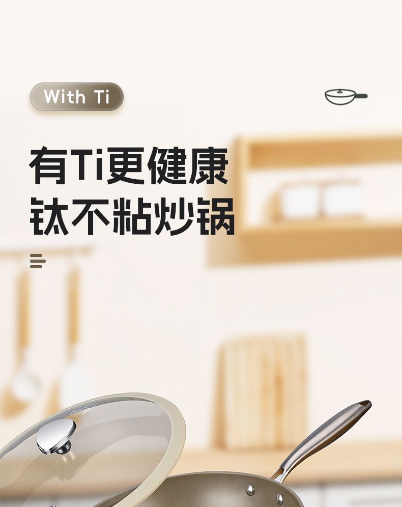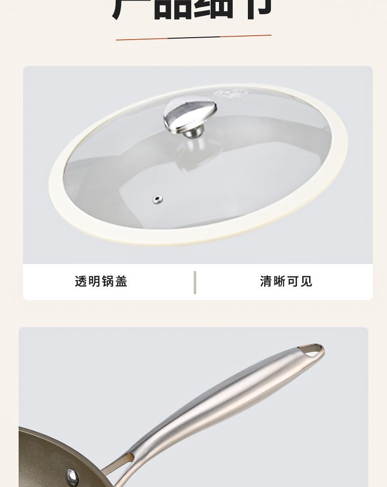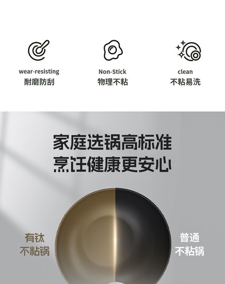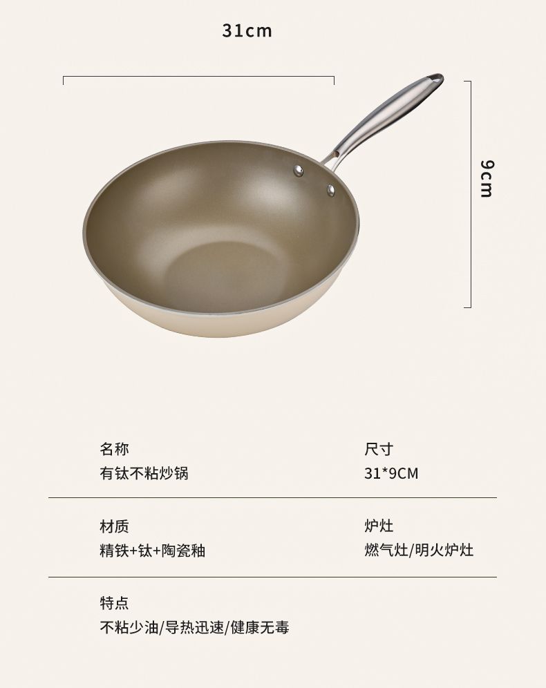 钛晶陶瓷无氟涂层不粘锅炒锅家用聚油不沾锅燃气电磁炉用钛锅炒锅