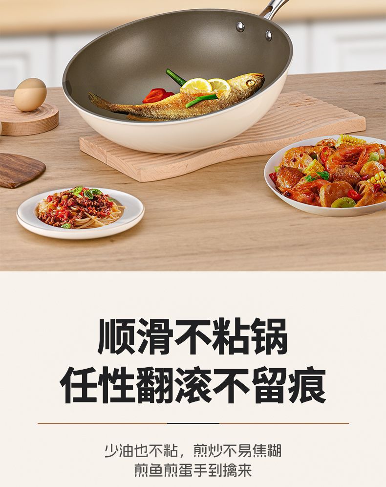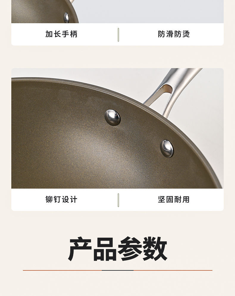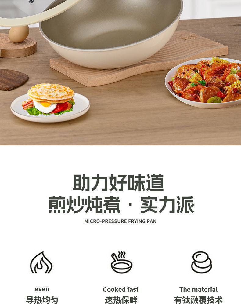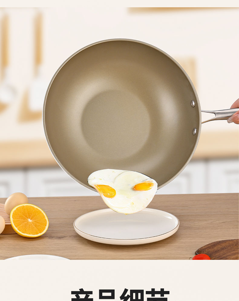 钛晶陶瓷无氟涂层不粘锅炒锅家用聚油不沾锅燃气电磁炉用钛锅炒锅